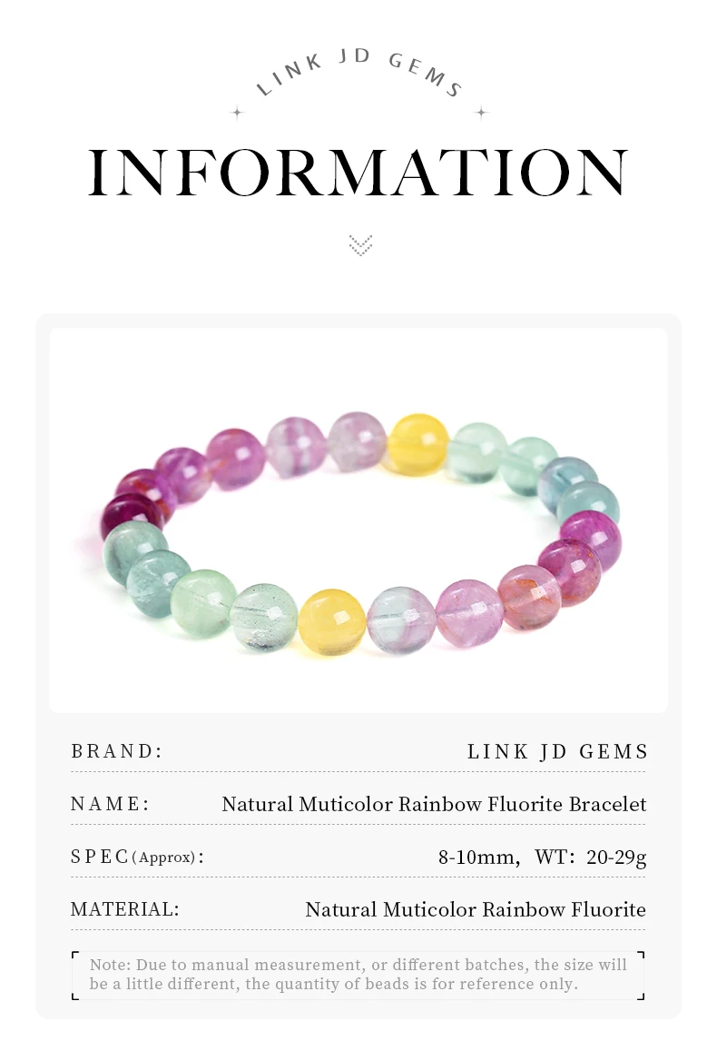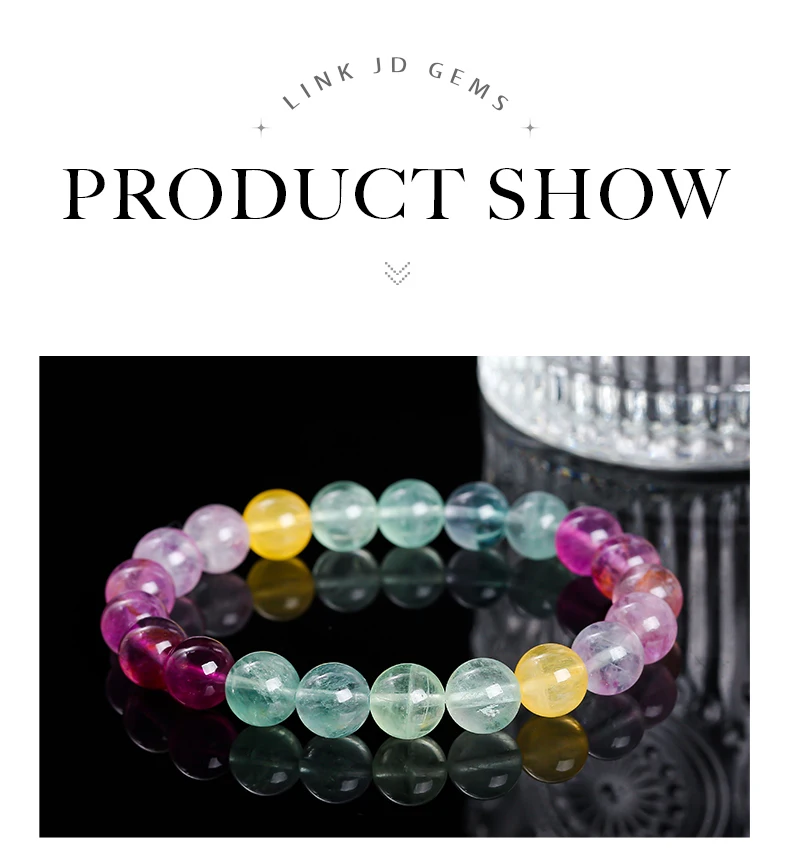 3 reviews for JD 5A Natural Stone Muticolor Rainbow Fluorite Bead Bracelet Women Reiki Healing Lucky Stretchy Mala Bangles Crystal Jewelry