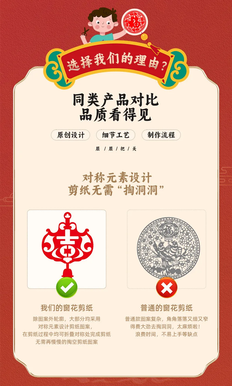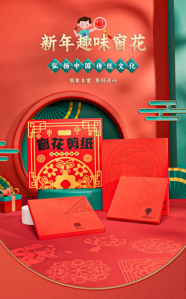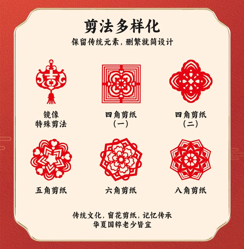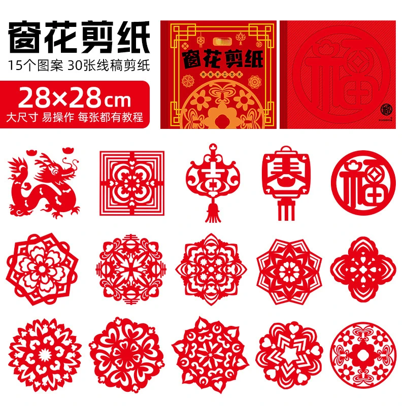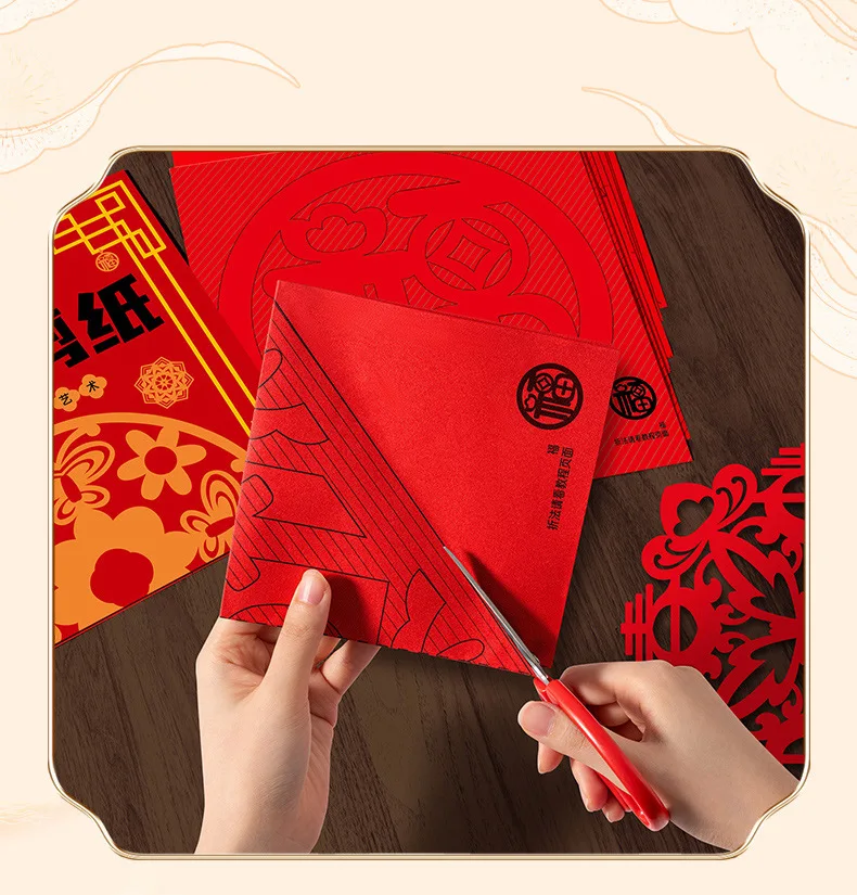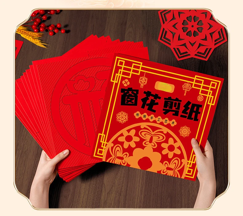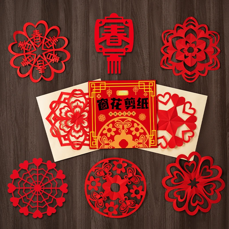 Kid DIY Paper-cut New Year and Spring Festival Fun Paper-cut Chinese Style Handmade Diy Line Art Drawing Window Flower Paper-cut