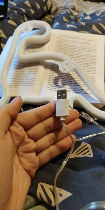 Very Chulísima!!! I loved it!!! I stuck it with double-sided tape. Can be put with USB or batteries. I have taken an external battery that I do not use and I have put it nearby for when I want to plug it in and see my little light