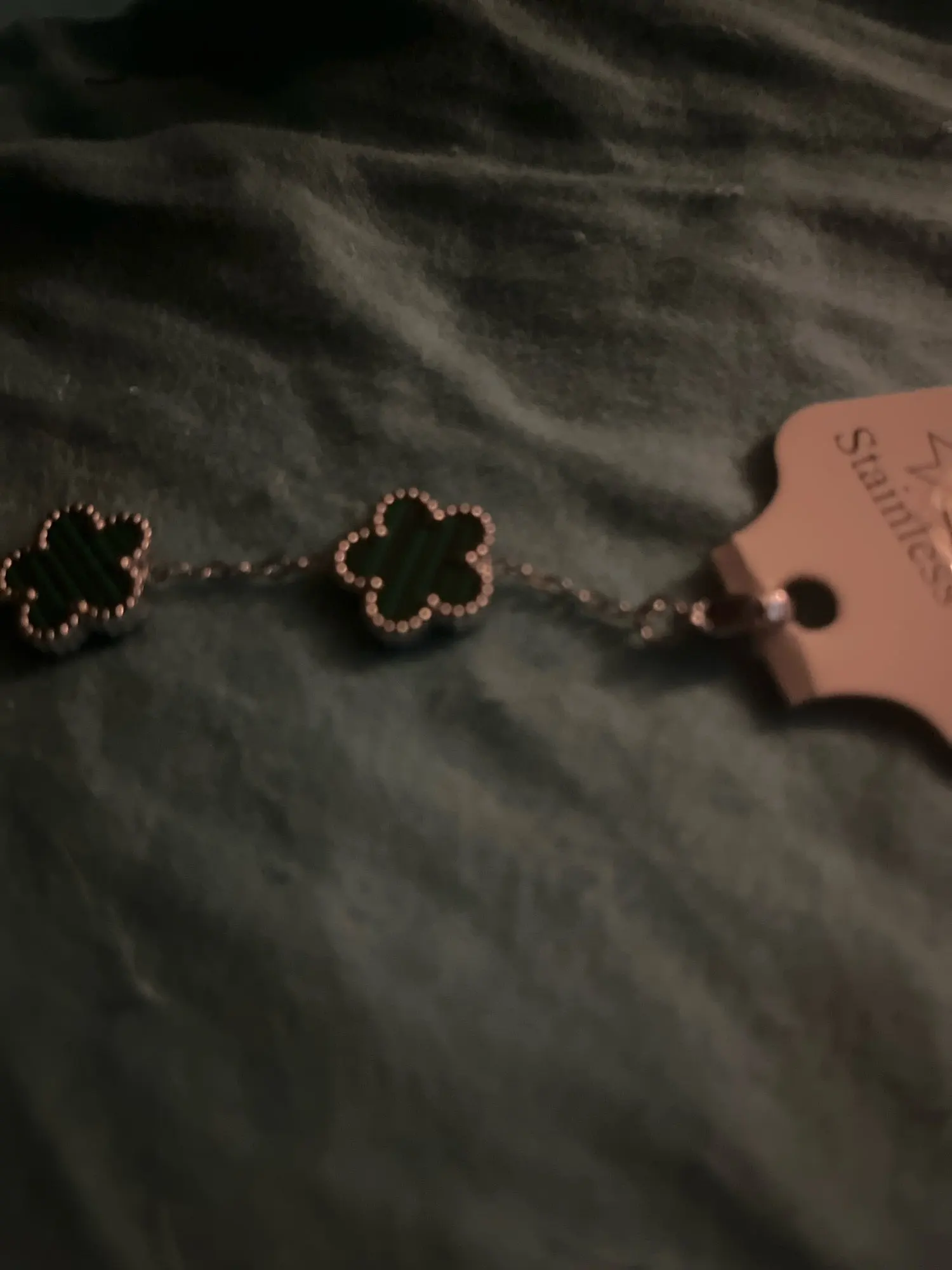 It’s cute the shamrocks are green. My pictures are making them look darker though. Chain is delicate