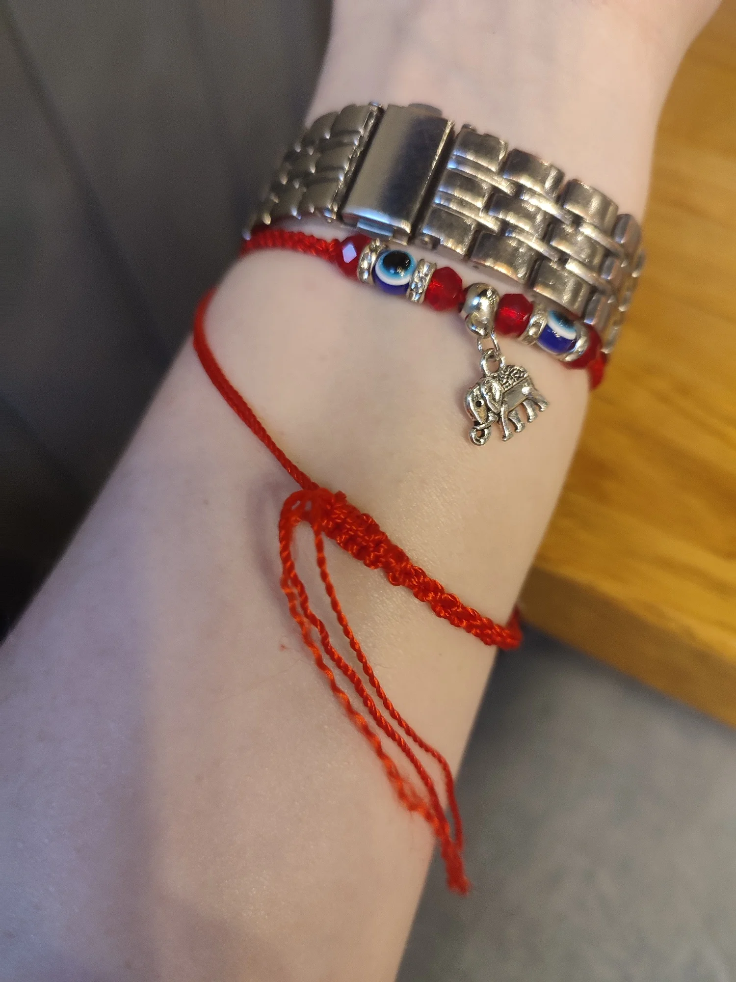 A thin red thread with pendants, everything is as expected. Fast Delivery