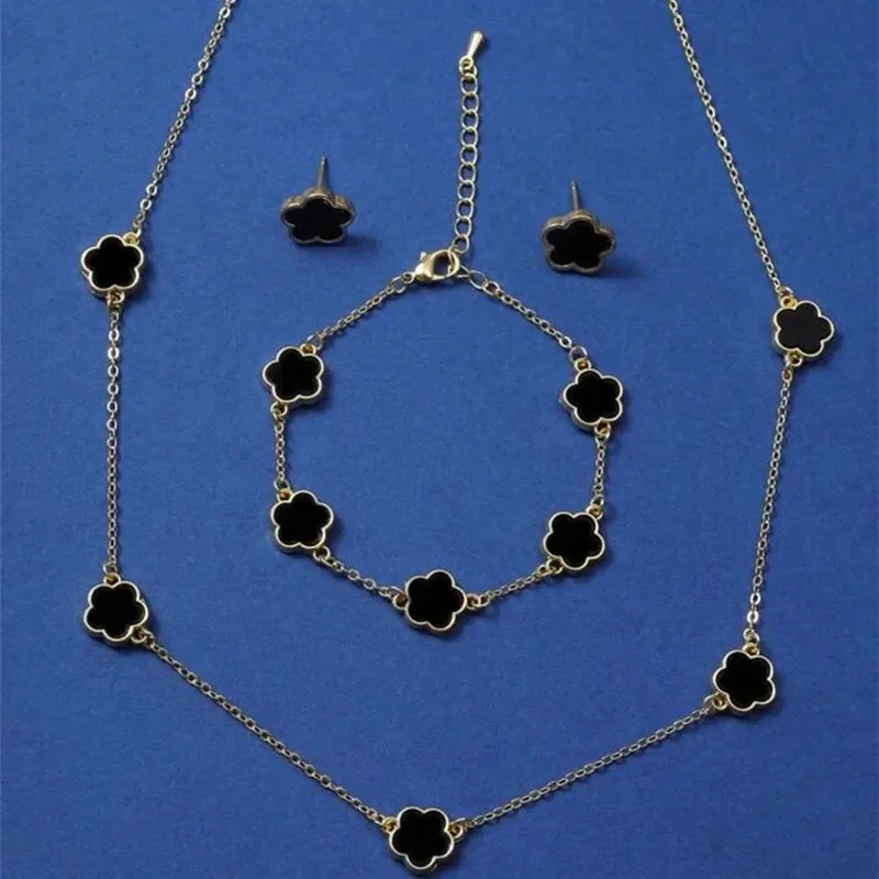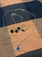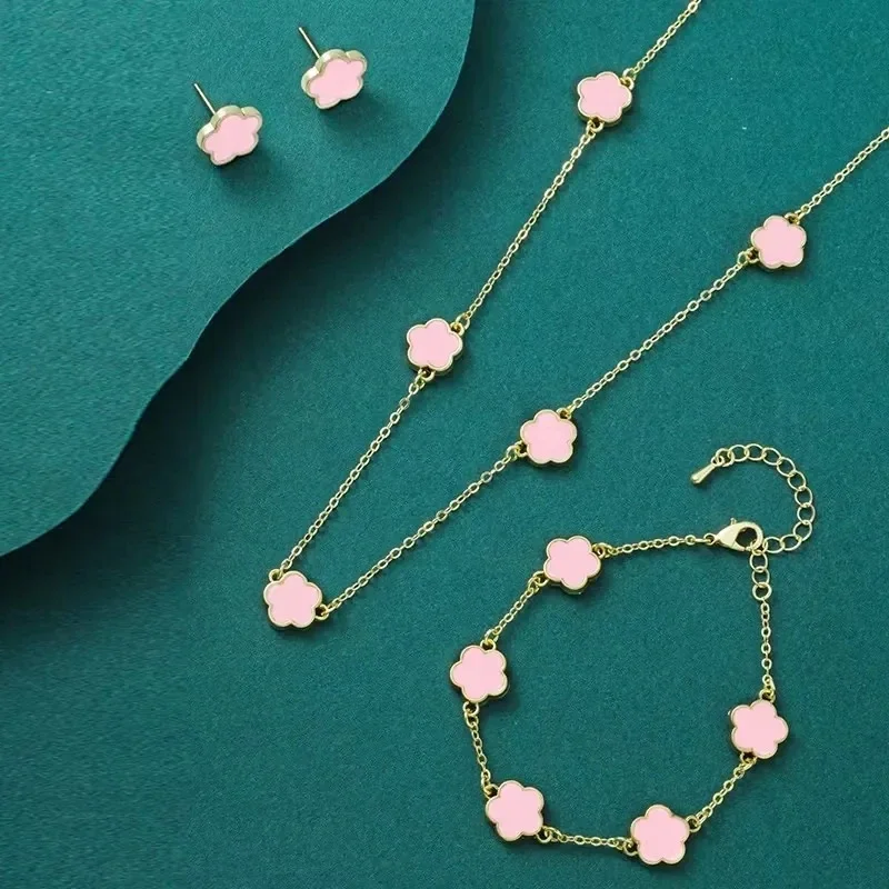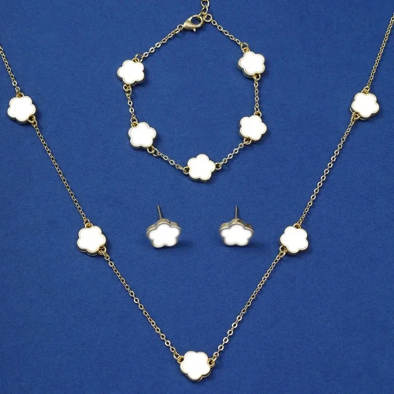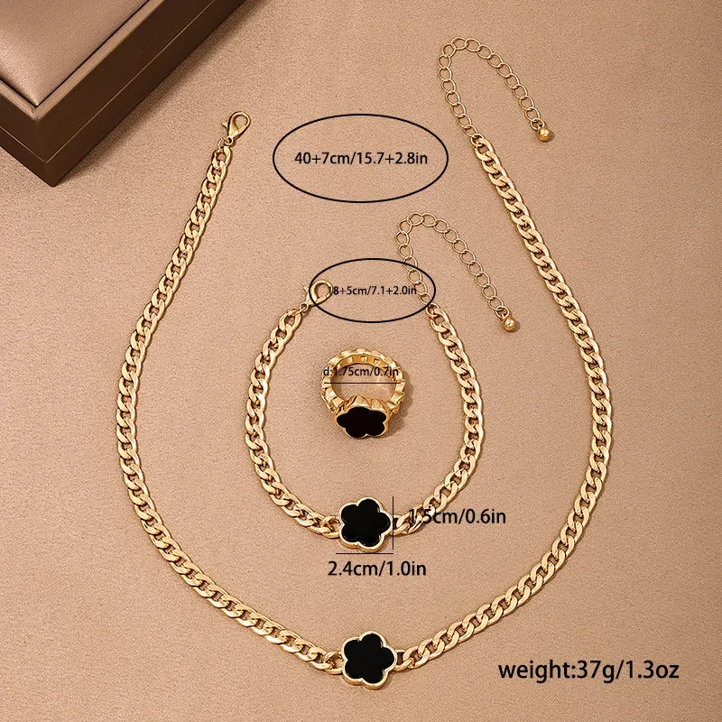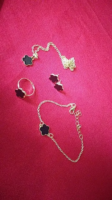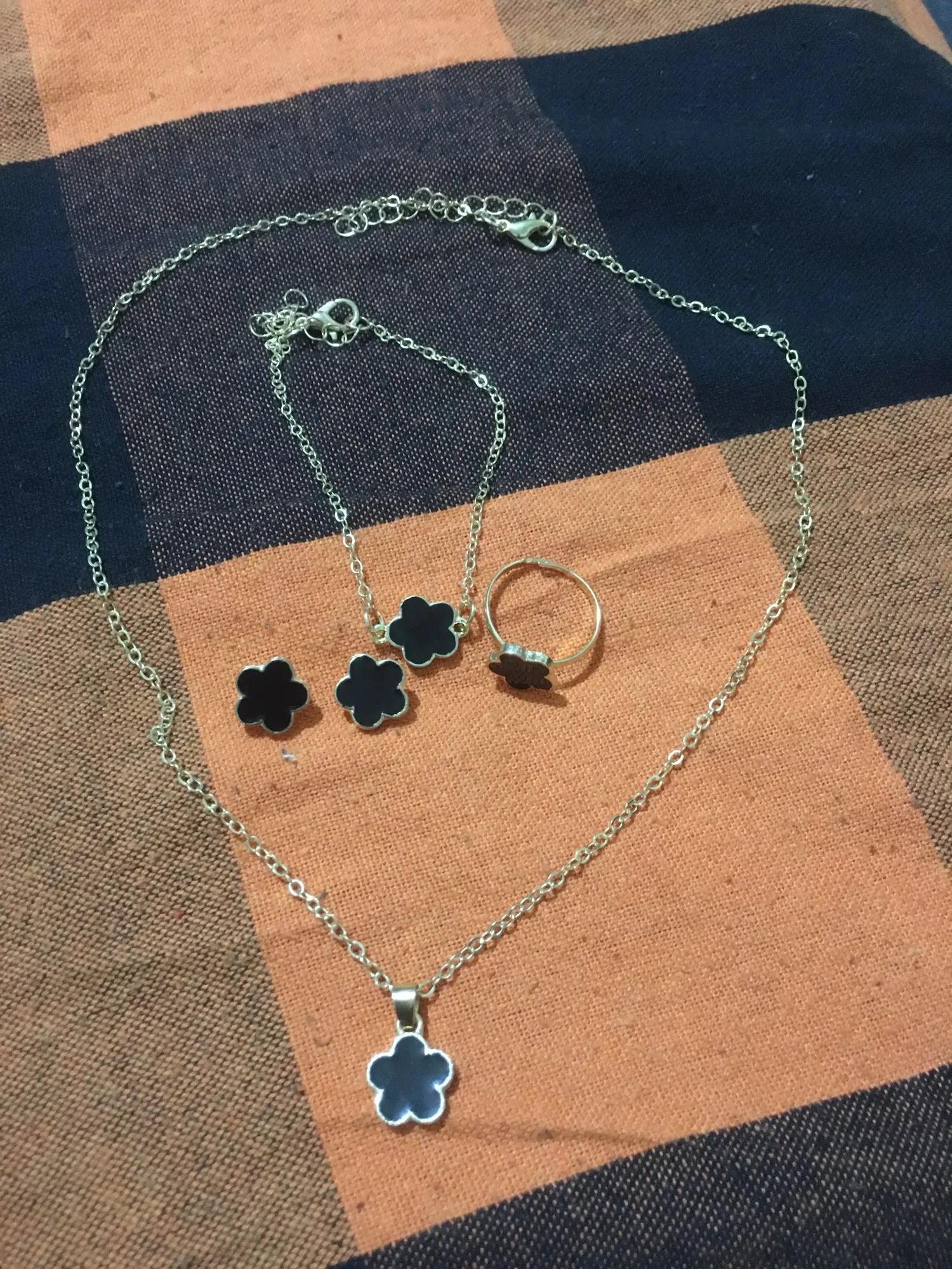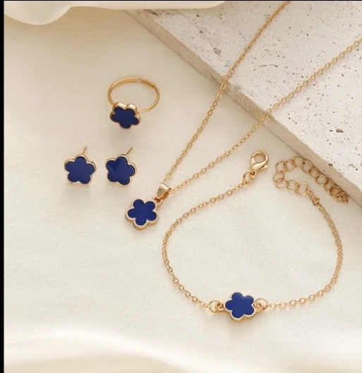 15 reviews for Lucky Five-petal Flower Clover Earrings Necklace Ring Bracelet Four-piece set for Woman Fashionable Accessories Party Jewelry