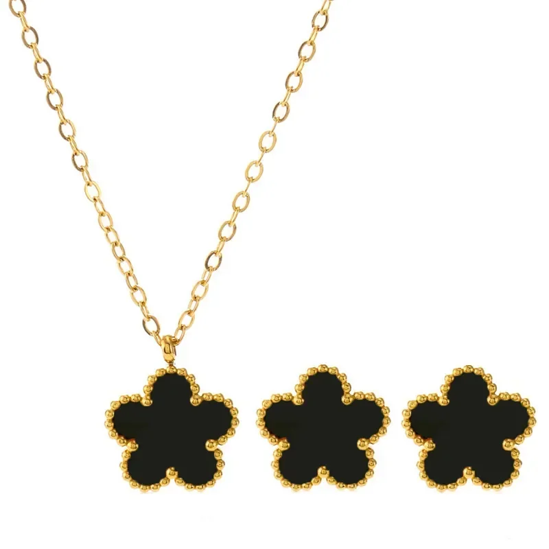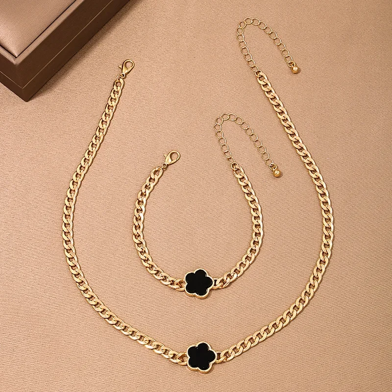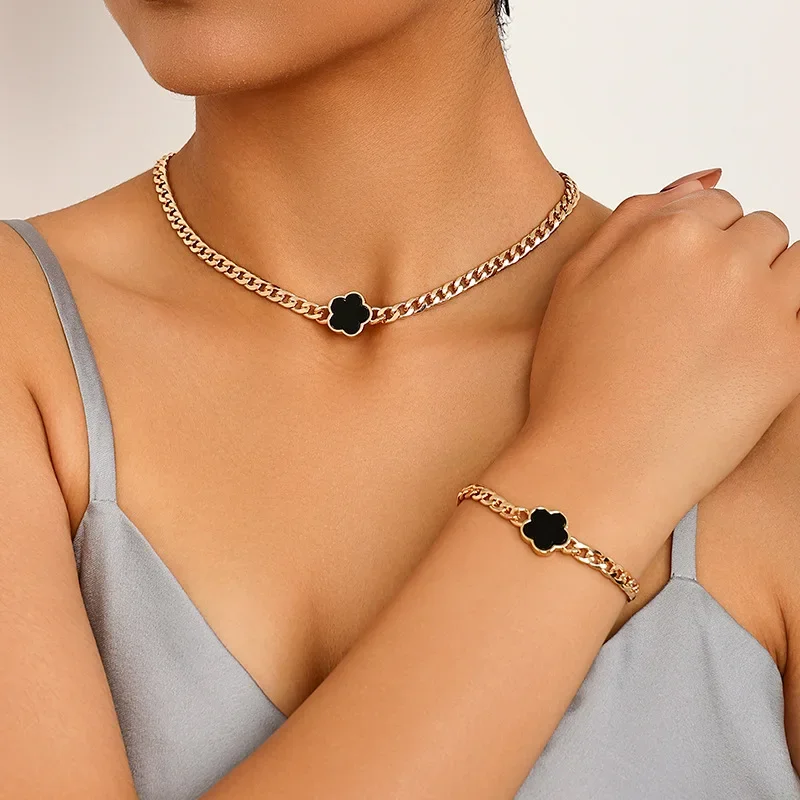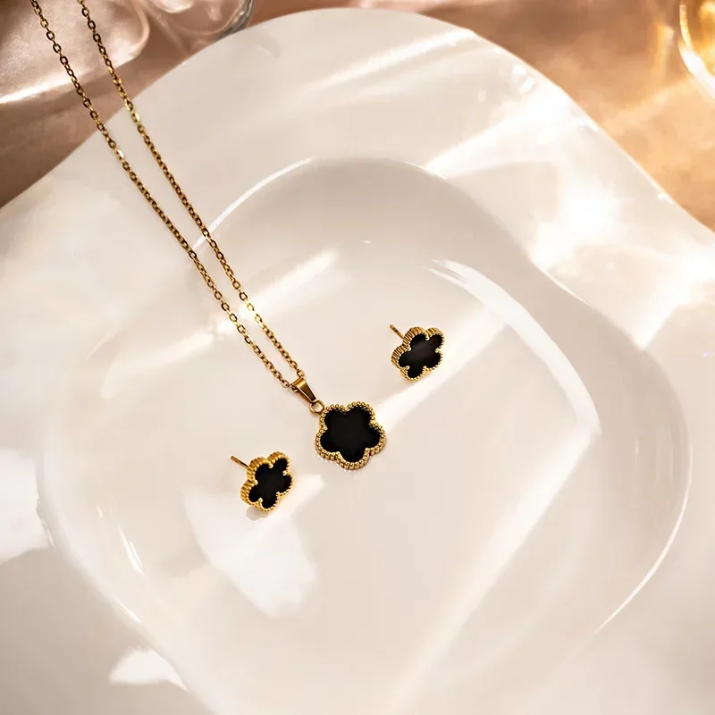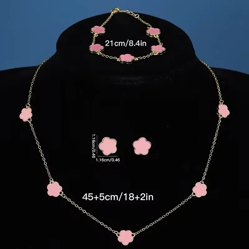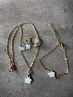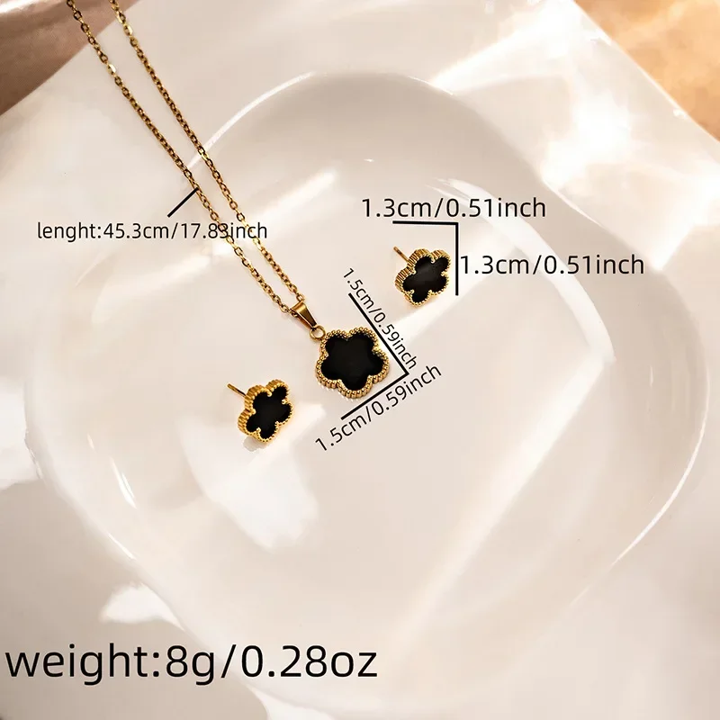 15 reviews for Lucky Five-petal Flower Clover Earrings Necklace Ring Bracelet Four-piece set for Woman Fashionable Accessories Party Jewelry