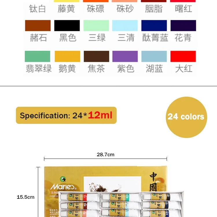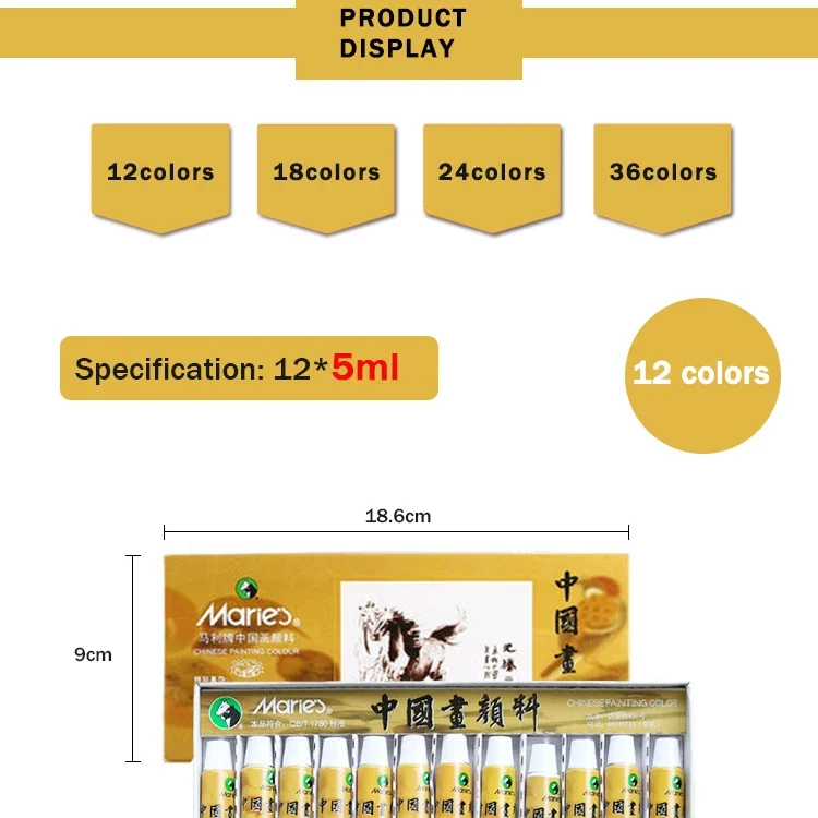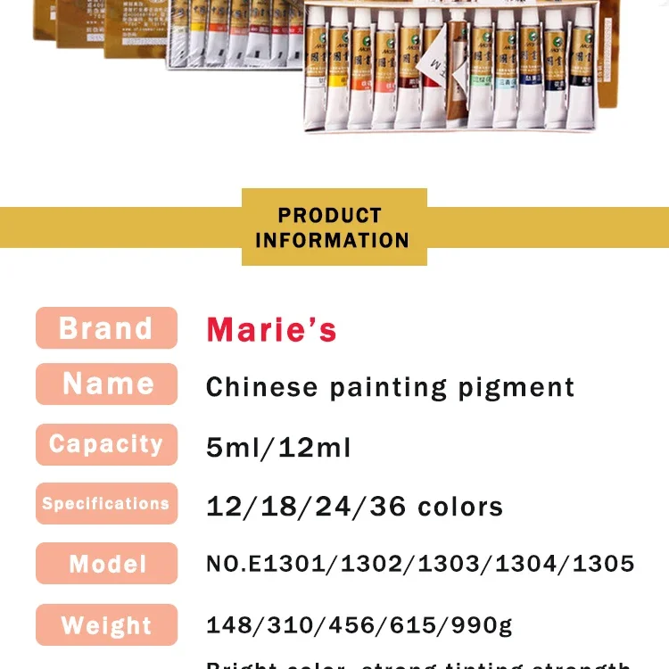 Marie’s Chinese Painting Pigment 5/12ML 12/18/24/36 Colors Ink Painting Paste Water Color Pigment Students/Beginners Supplies