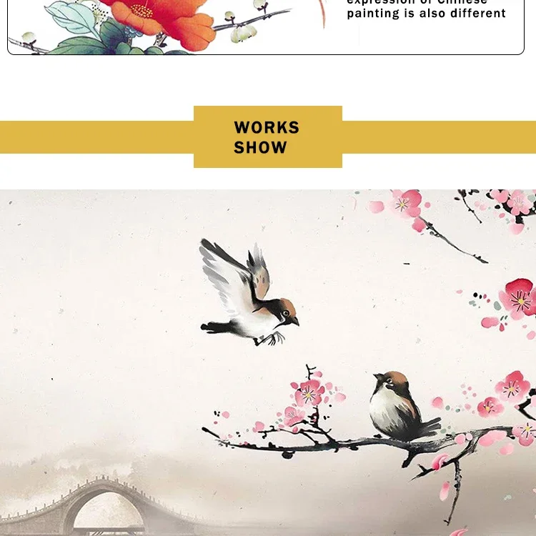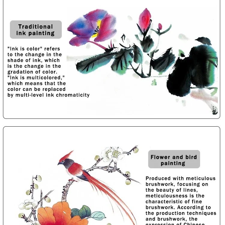 Produced with meticulous brushwork, focusing on the beauty of lines, meticulousness is the characteristic of fine brushwork. According to the production techniques and brushwork, the expression of Chinese painting is also different
