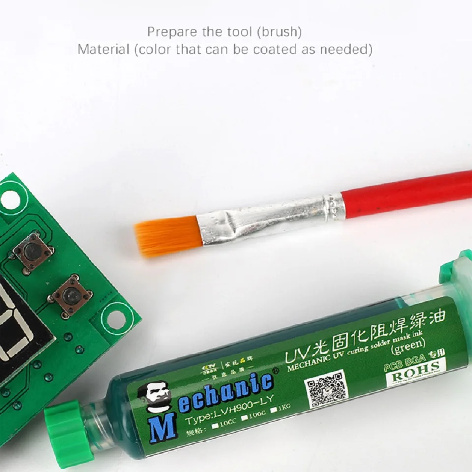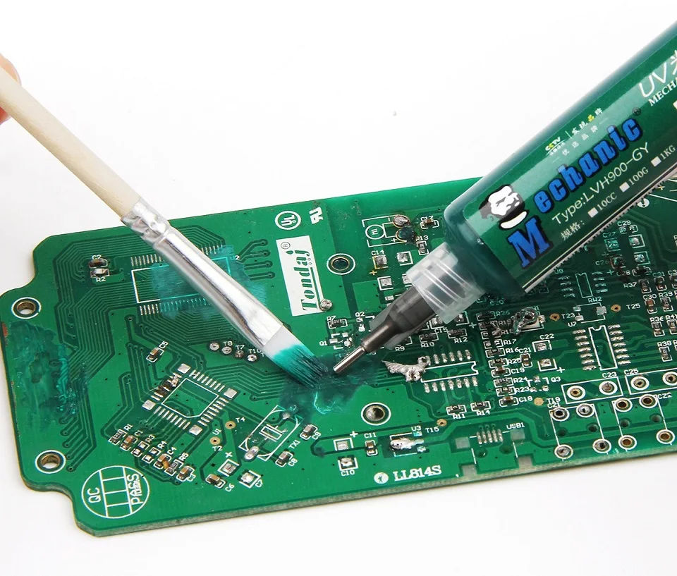 - This paint is used to protect PCB traces from corrosion, moisture.