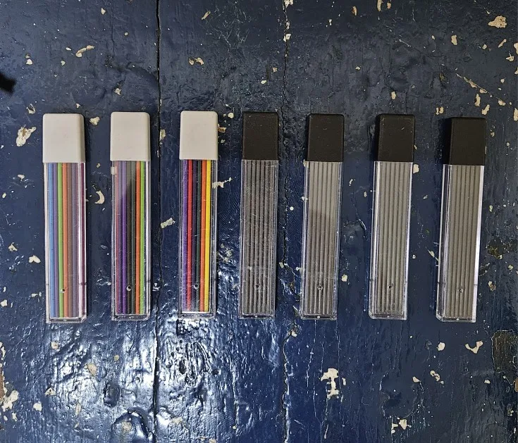 Everything came exactly as shown in the photo. The metal looking pencils have a plastic feel to it but thats completely fine. The amount of lead is abundat and good in my opinion. Overall good purchase.