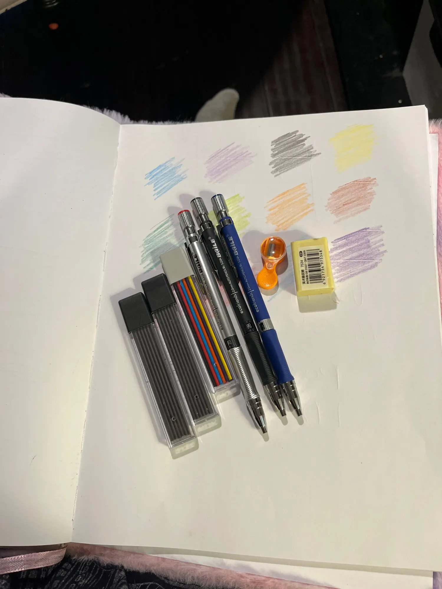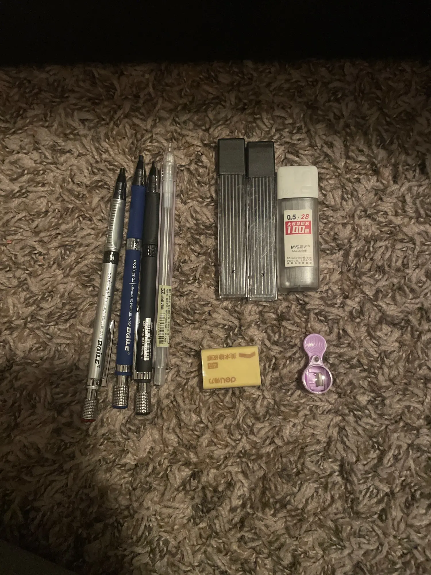Good quality writes good doesn’t break easy and it’s light and easy to put away it comes with an eraser, a sharpener, three pencils +more
