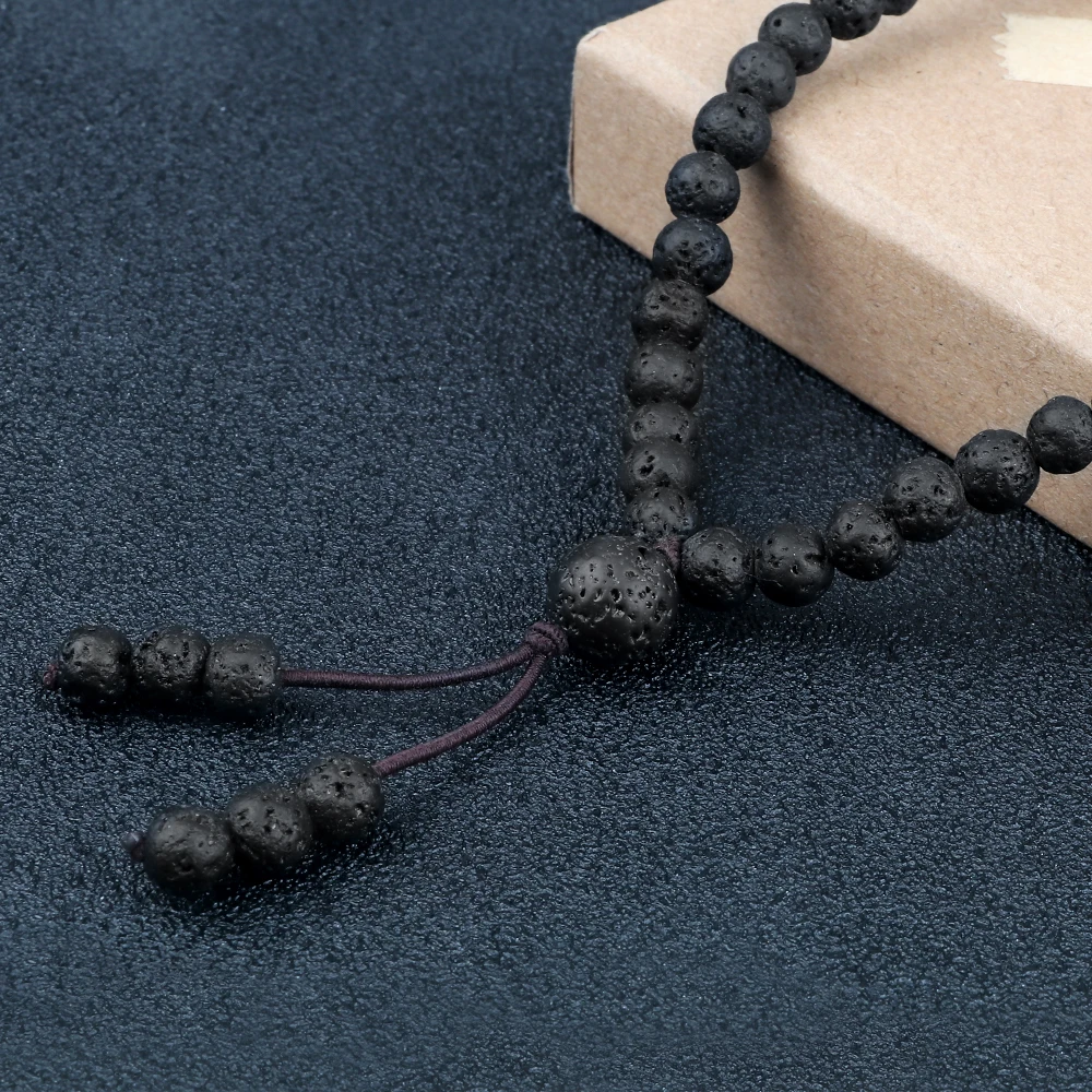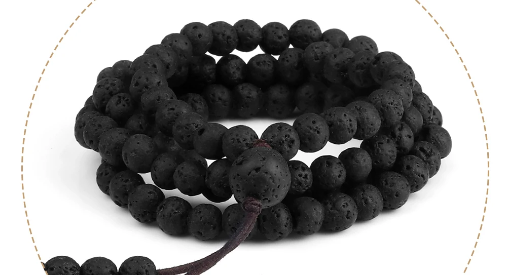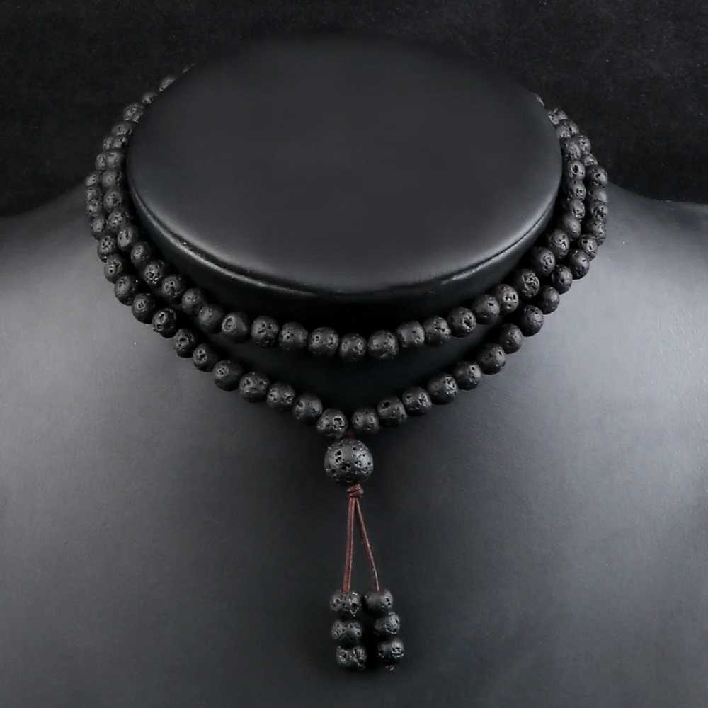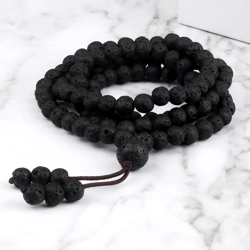 6mm Volcanic Lava Stone Beaded Necklace 108 Mala Beads Meditation Yoga Wrap Bracelets Handmade Black Energy Jewelry Oil Diffuser Buddhist Prayer Gift