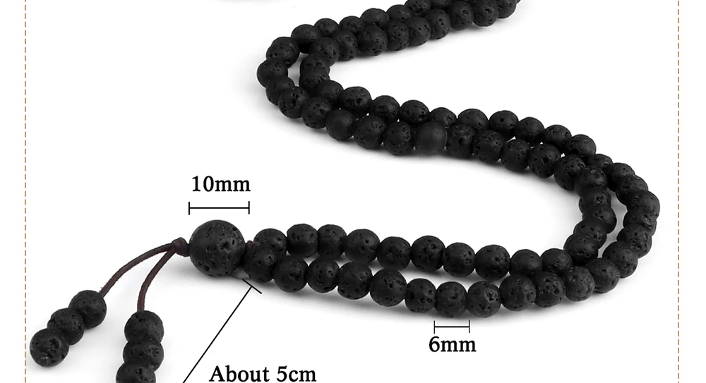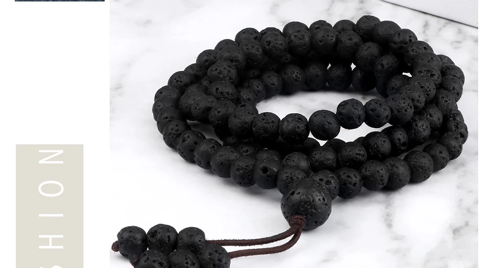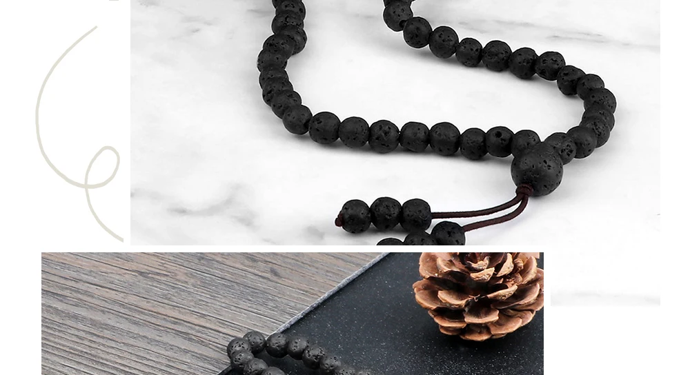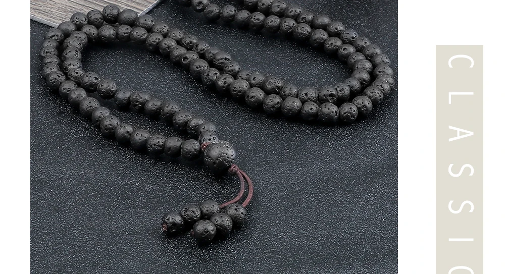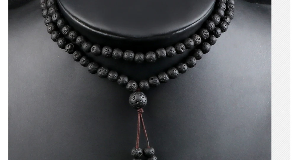 6mm Volcanic Lava Stone Beaded Necklace 108 Mala Beads Meditation Yoga Wrap Bracelets Handmade Black Energy Jewelry Oil Diffuser Buddhist Prayer Gift
