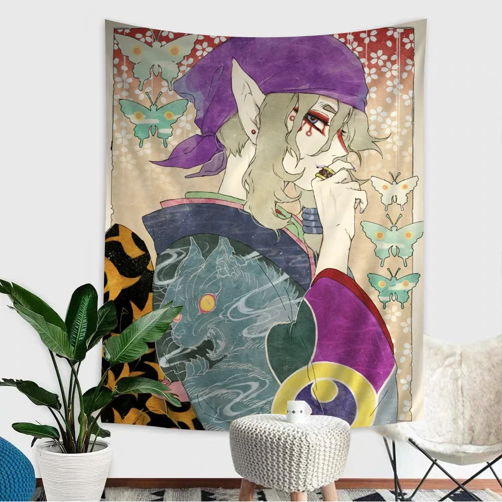 Mononoke Kusuriuri Anime Tapestry Indian Buddha Wall Decoration Witchcraft Bohemian Hippie Wall Hanging Sheets