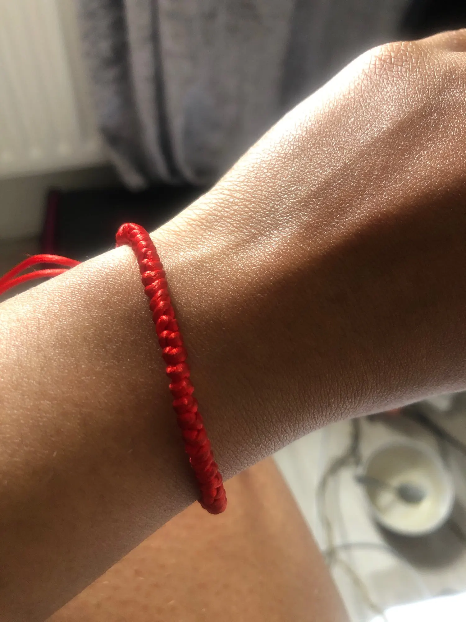 Is exactly as shown in the picture. I had been looking for a lucky bracelet that I liked and it is definitely this. I like how it looks combined with the same bracelets but other colors, which I have already acquired.