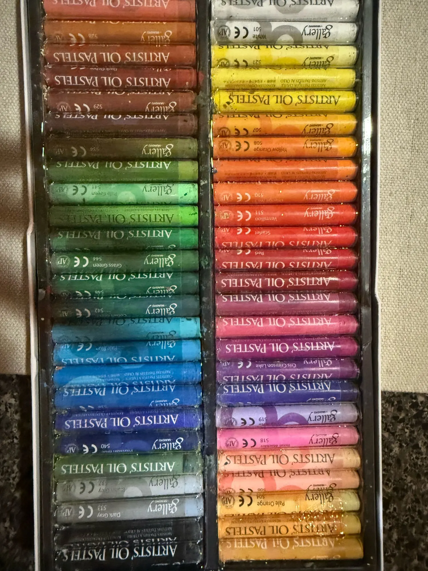 this is a nice starter set for the price if you are new to oil pastels. They are not messy. The colors are very rich.