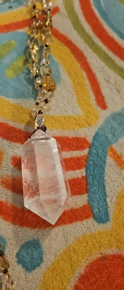 Beautiful pendant, whose quartz is transparent (in my case) and with a beautiful rainbow. I fully recommend this product.