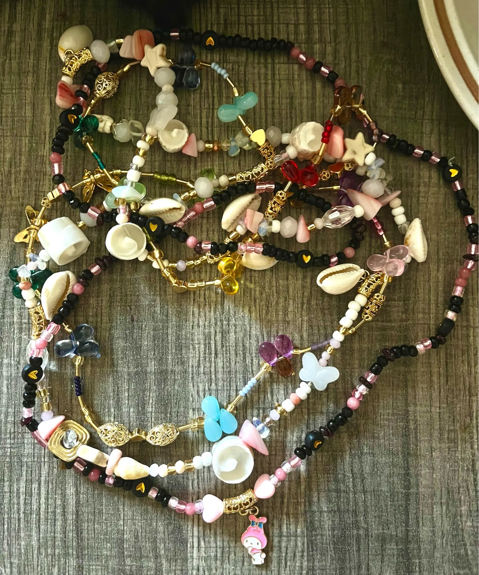I used these as accent beads in my friends’ waist beads. They’re pretty solid. I realized too late I meant to get one of each color as opposed to just orange and pink. Oops? The whole size of these were good.