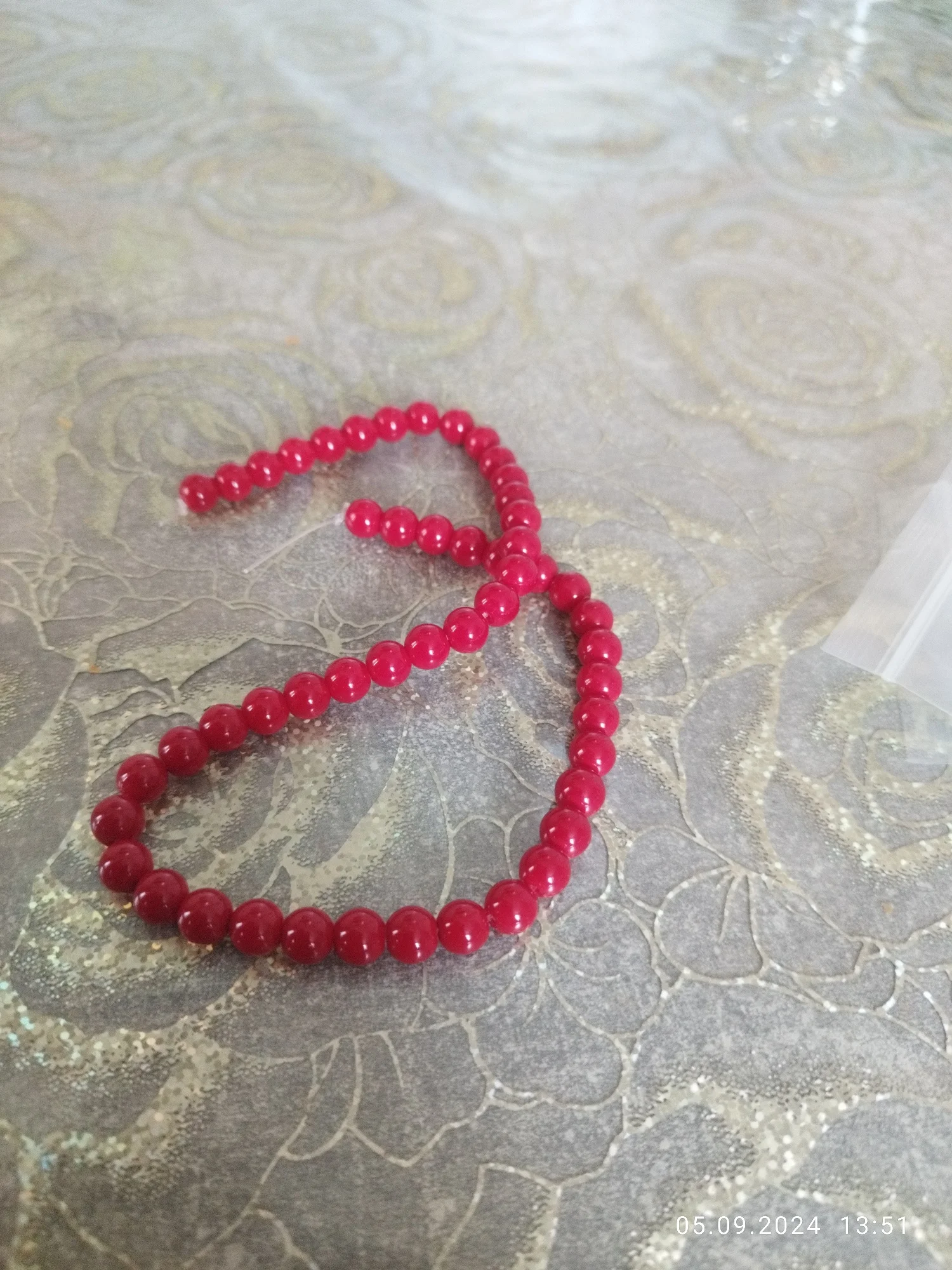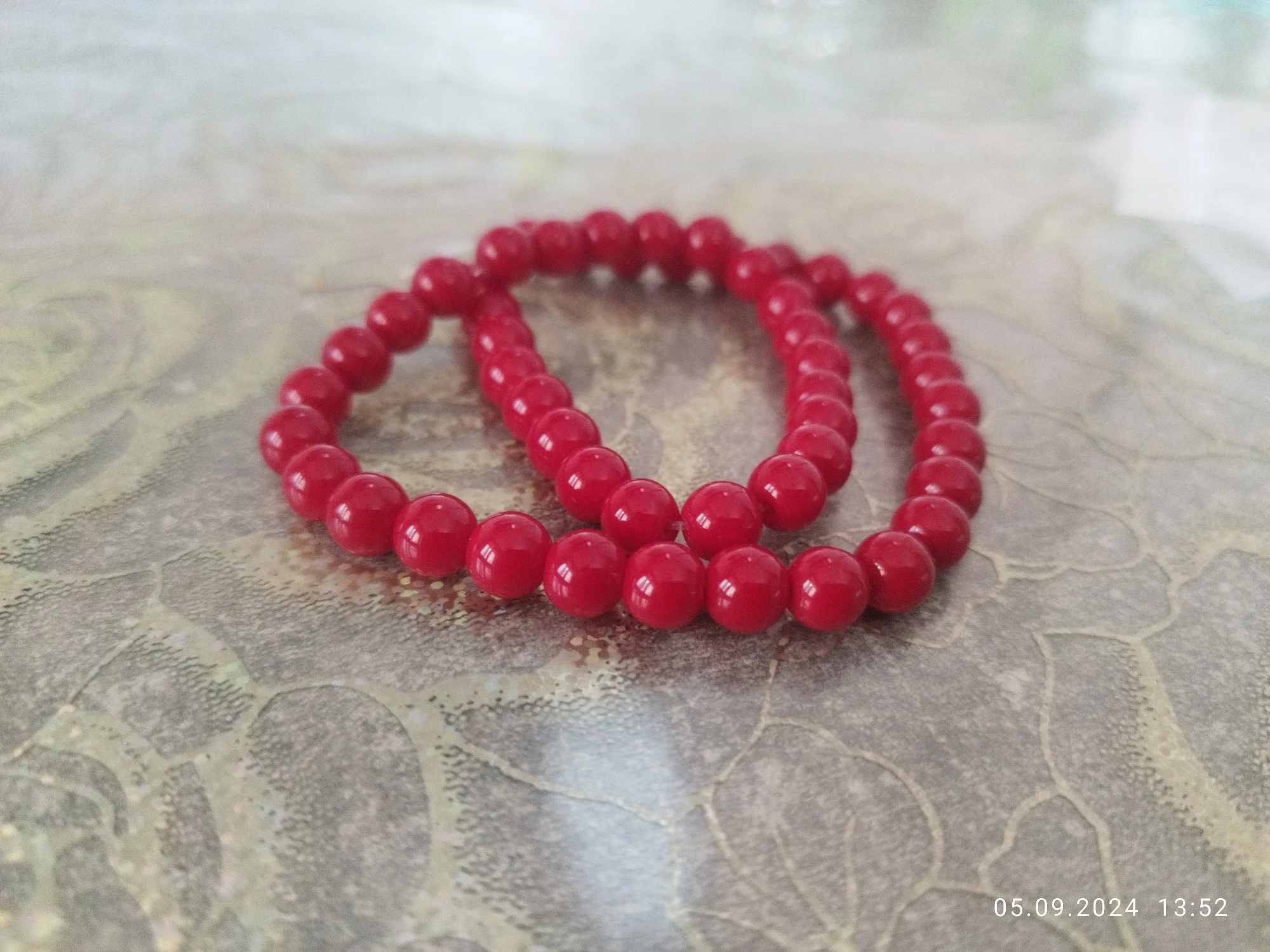 Excellent beads, heavy, more than the declared quantity. Exactly 51 beads. The color is even, juicy, bloody, in the photo they look lighter than in reality