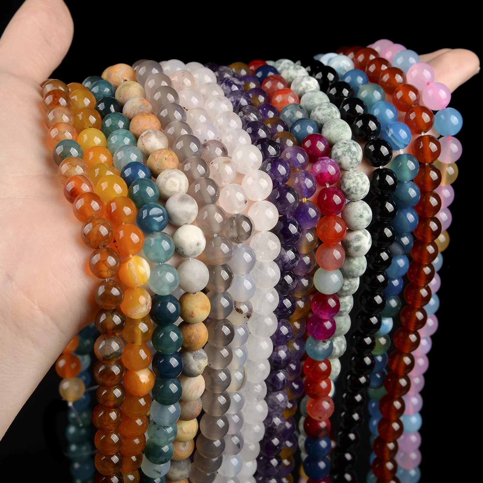 Color: Flower Agate Item Diameter: 8mm- about 45pcs