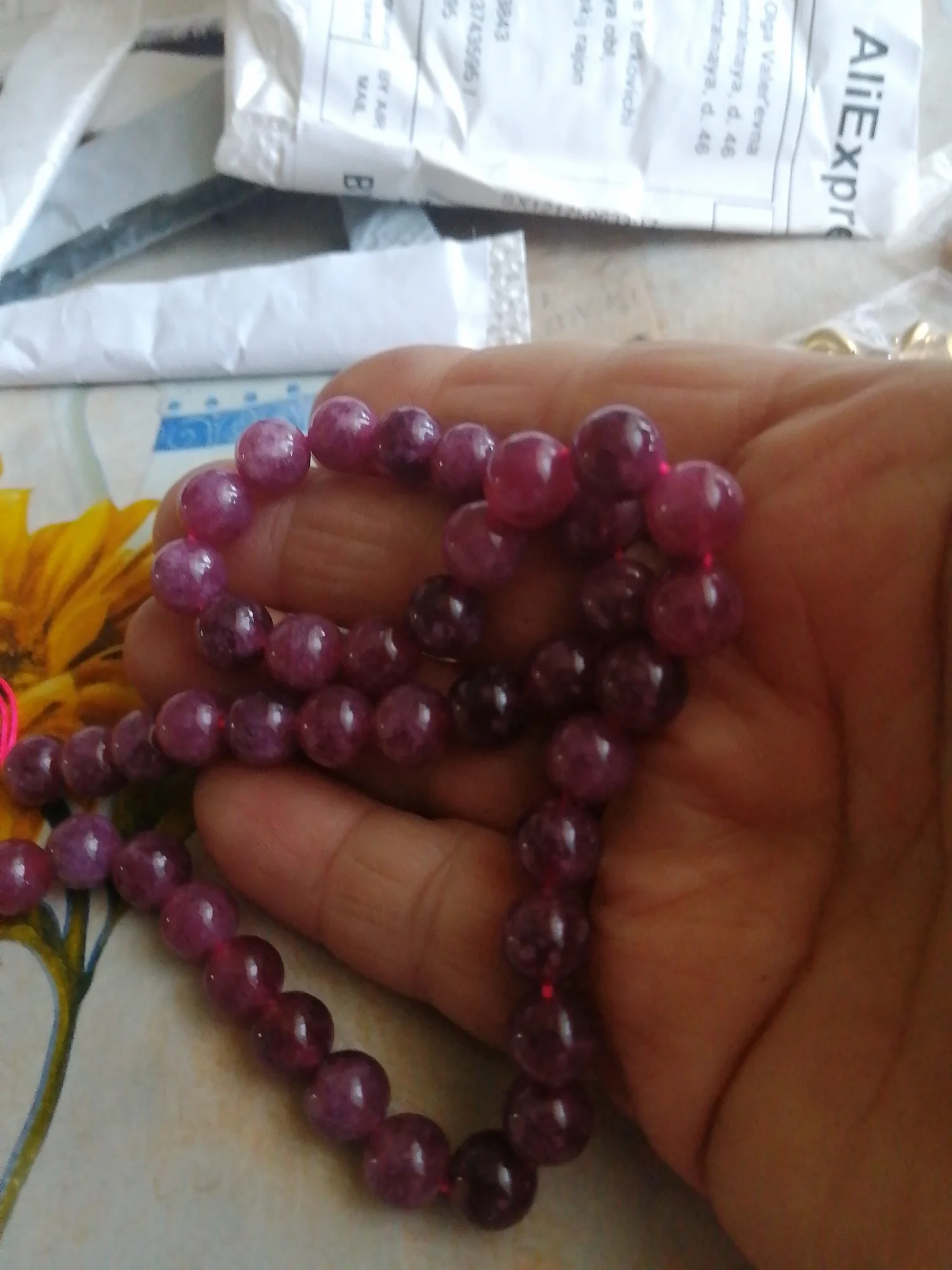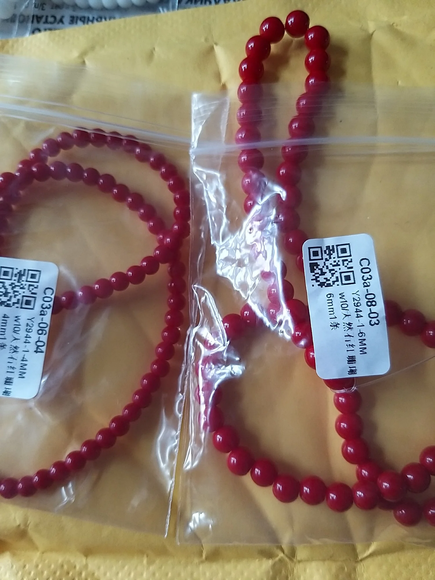 Very beautiful. Ordered two sizes and they are different in color, the smaller ones are dimmer. Several beads with irregularities, but not critical, it is clear that the stone.