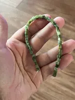 Lighter, photo, nice green color, the size of the beads is the same, length 38 cm, it is good to do through the knot.