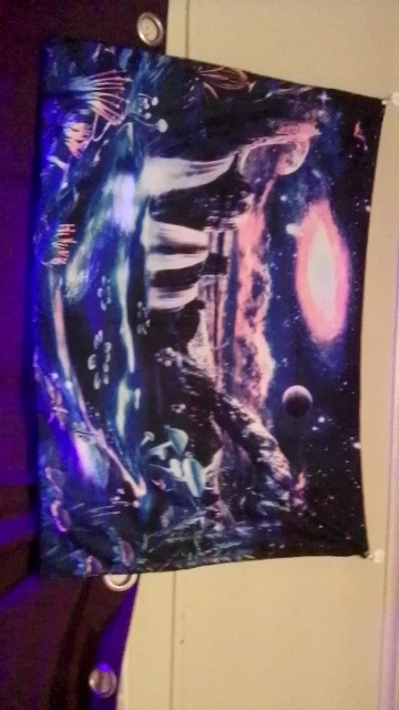 Great back drop!!! I love the black light effects. True to the size ordered. This a a great conversation piece. Delivered faster than the expected dates!!! ☆☆☆☆☆