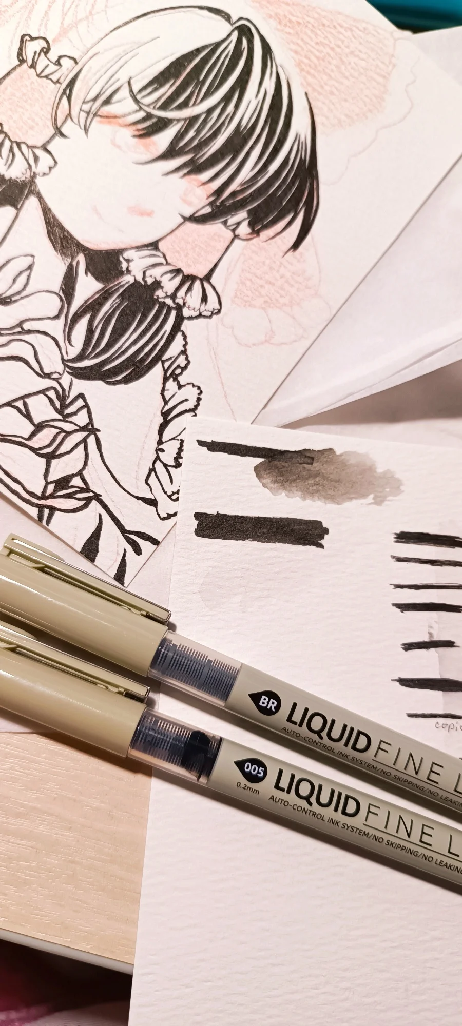 005 perfect for details! It is applied linearly, moves gently even on slightly rough paper.