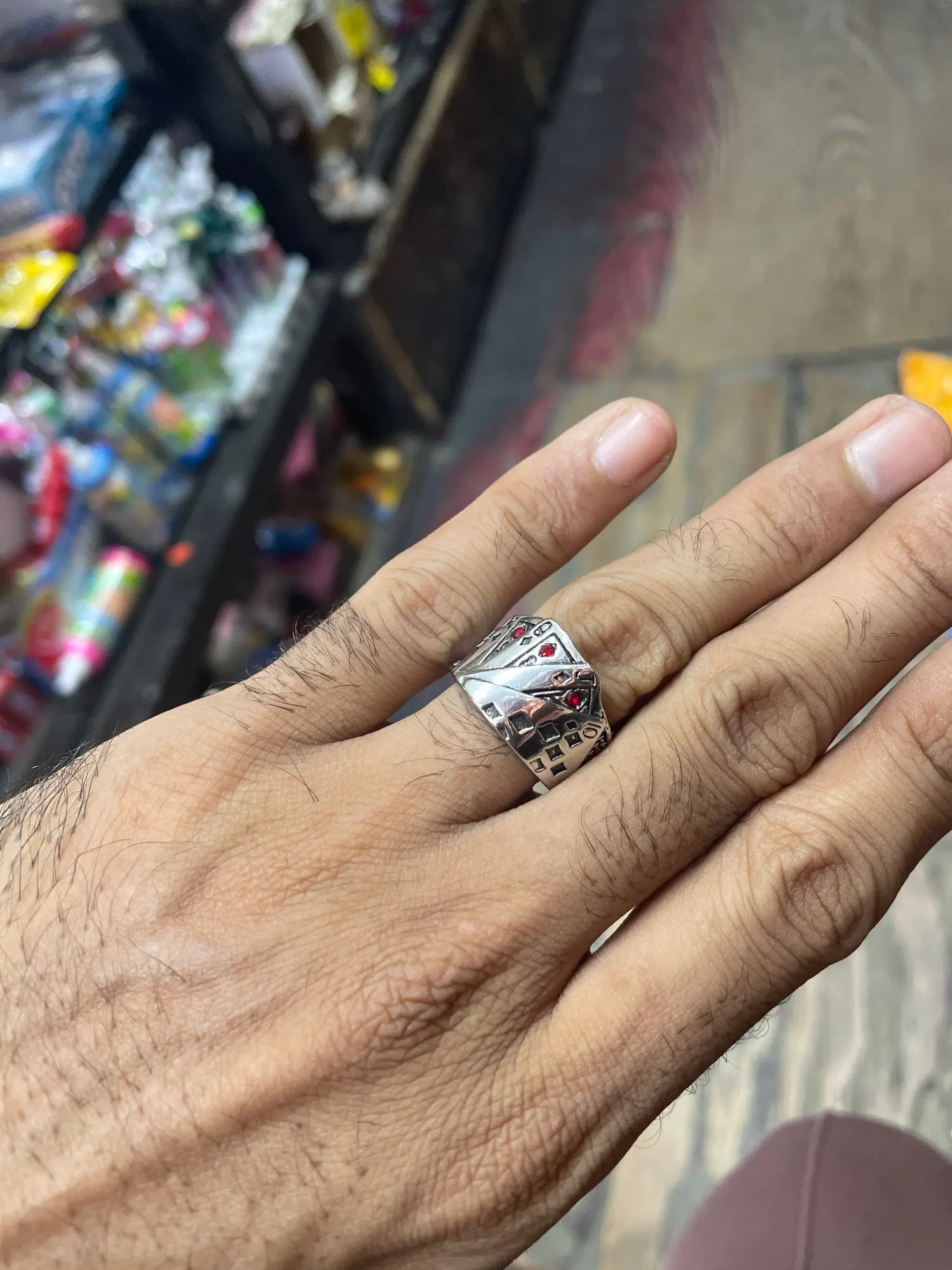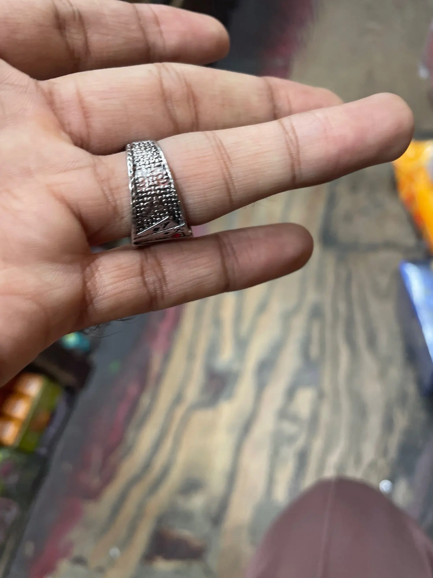 Nice little ring. Adjustable. Looks ok. Only was $1.50. Can’t go wrong.