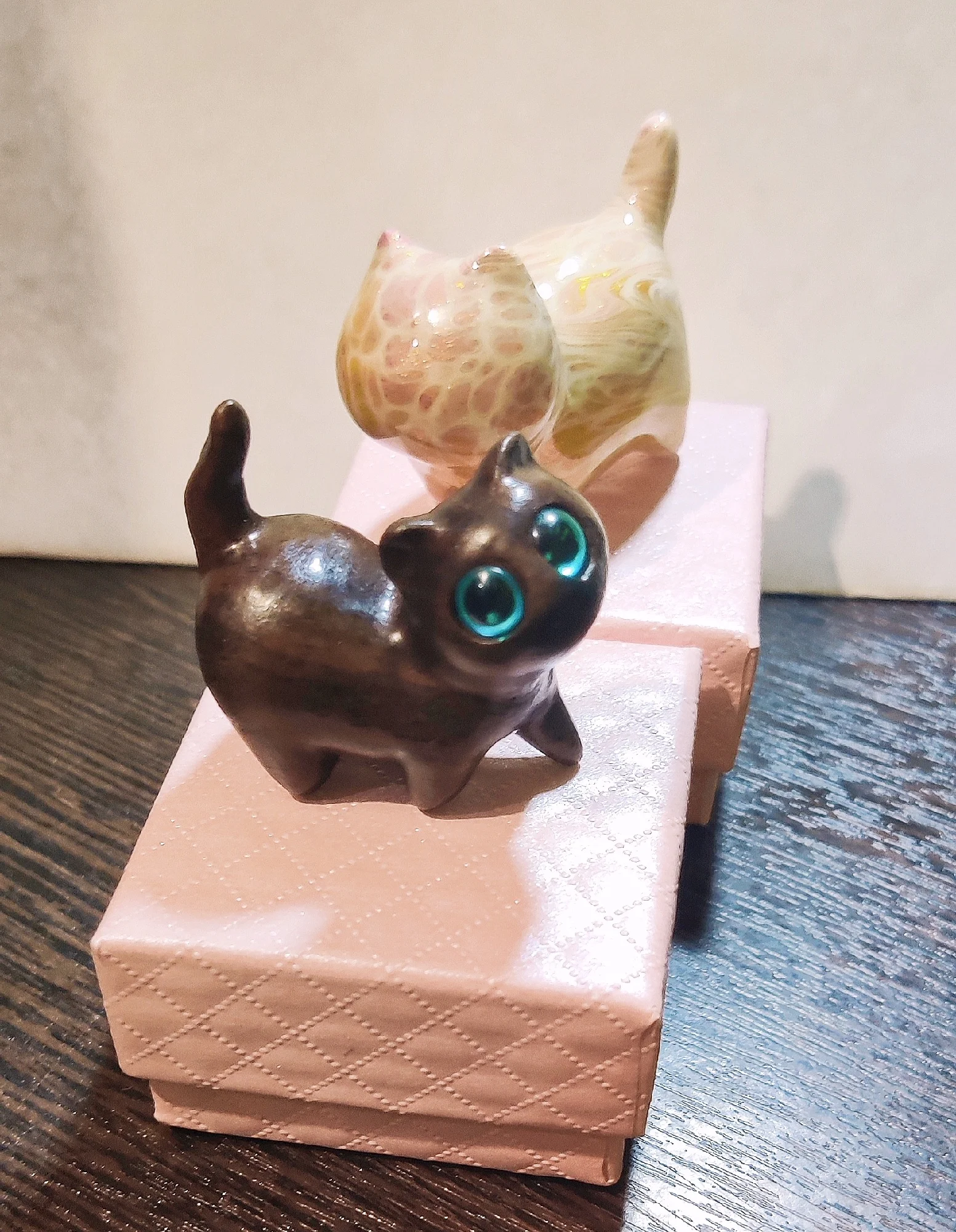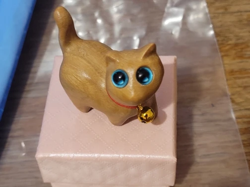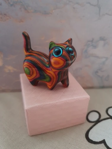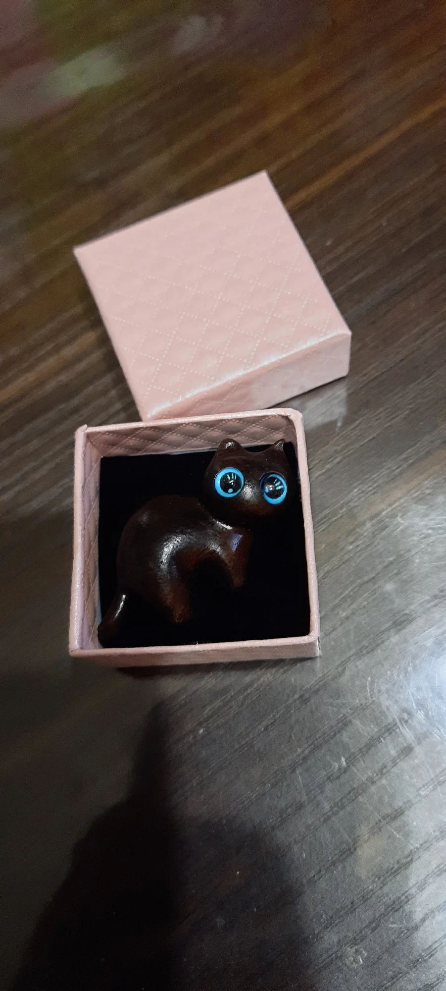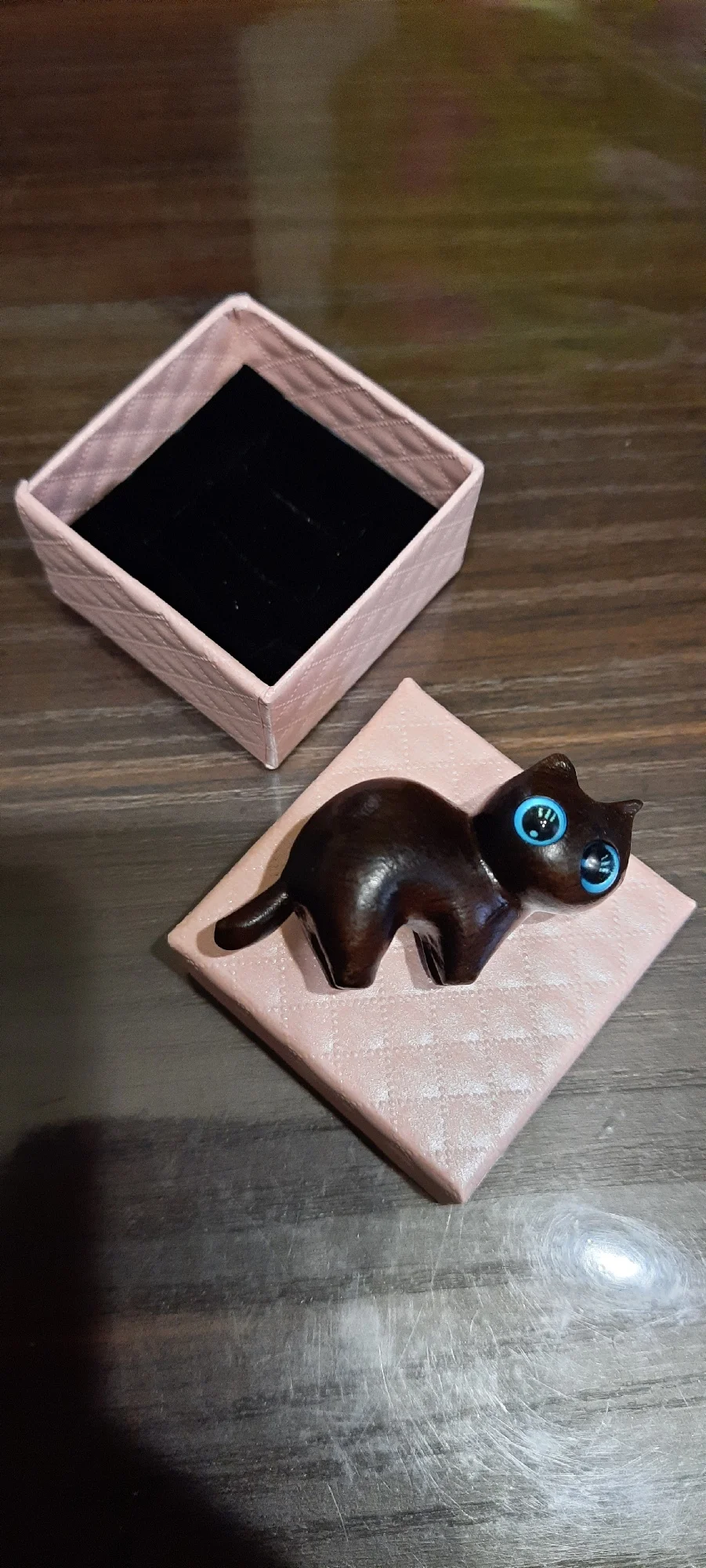 Kittens came in boxes, both whole and very cute. For some reason, a wooden cat is not black, but dark brown, but this color suits me completely