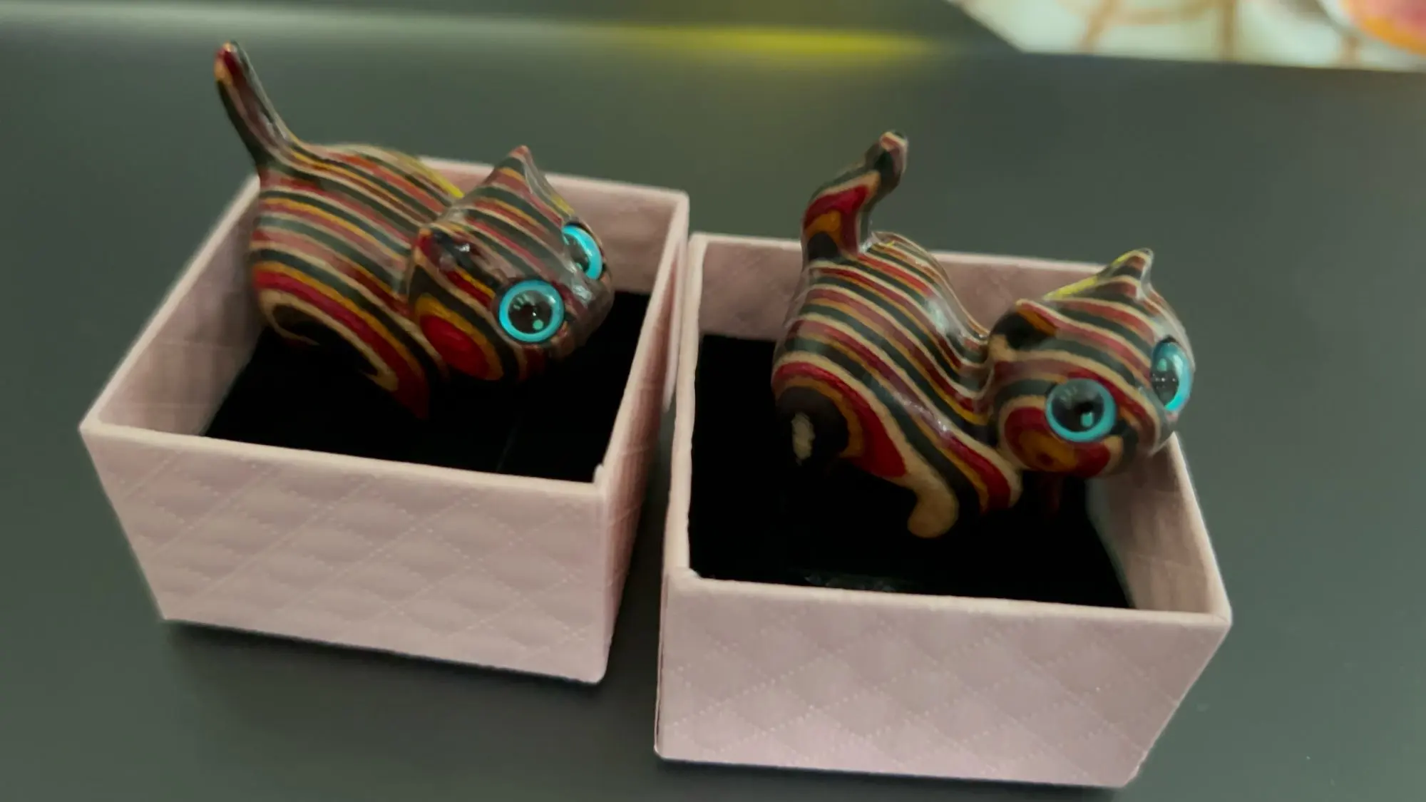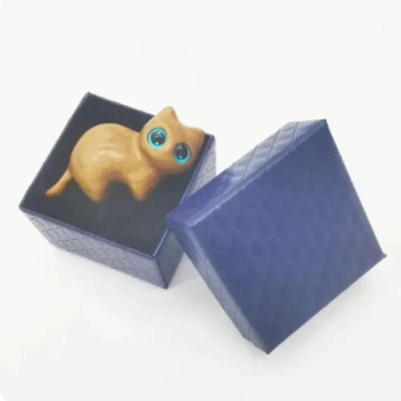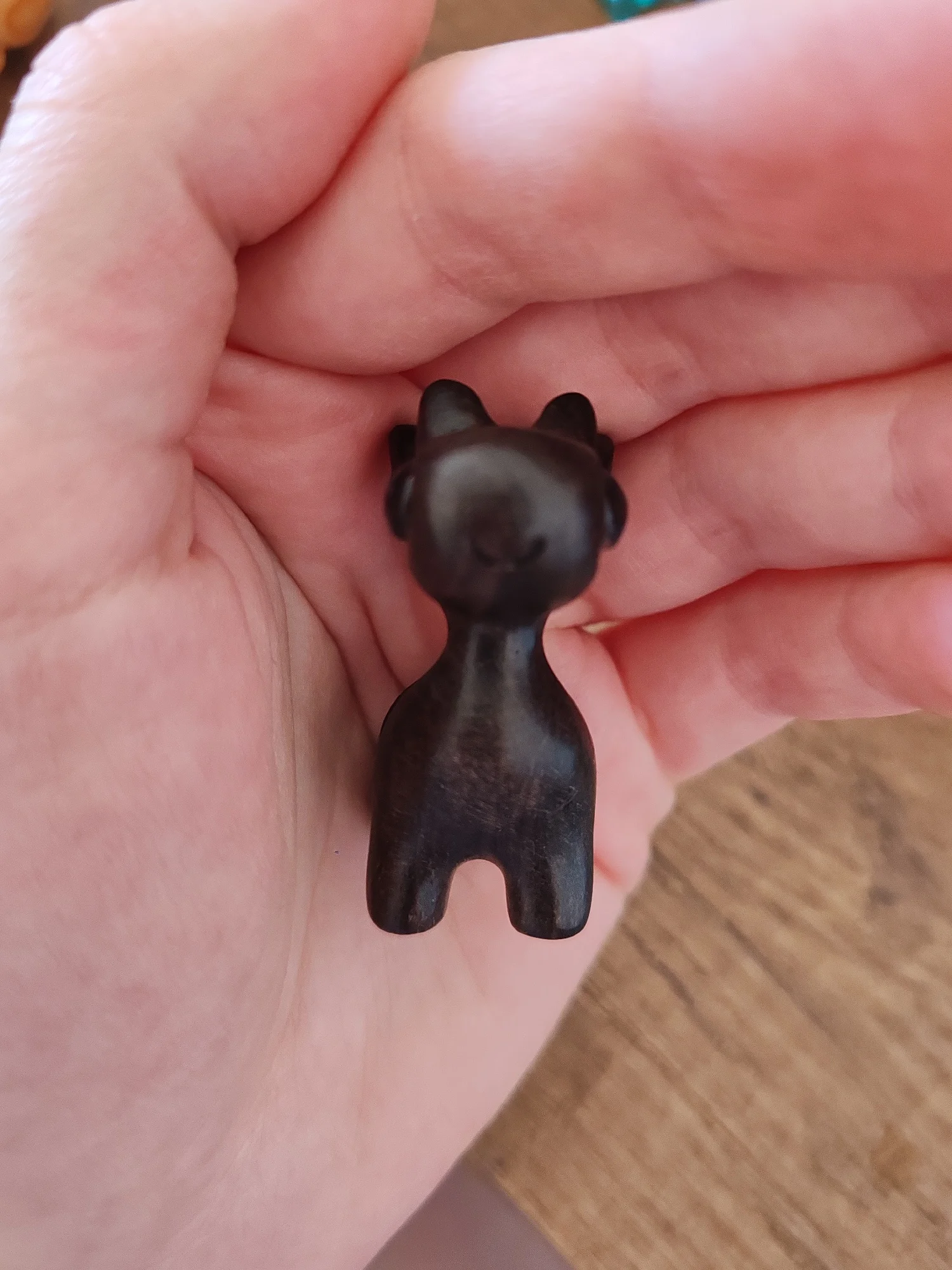 Kittens came in boxes, both whole and very cute. For some reason, a wooden cat is not black, but dark brown, but this color suits me completely
