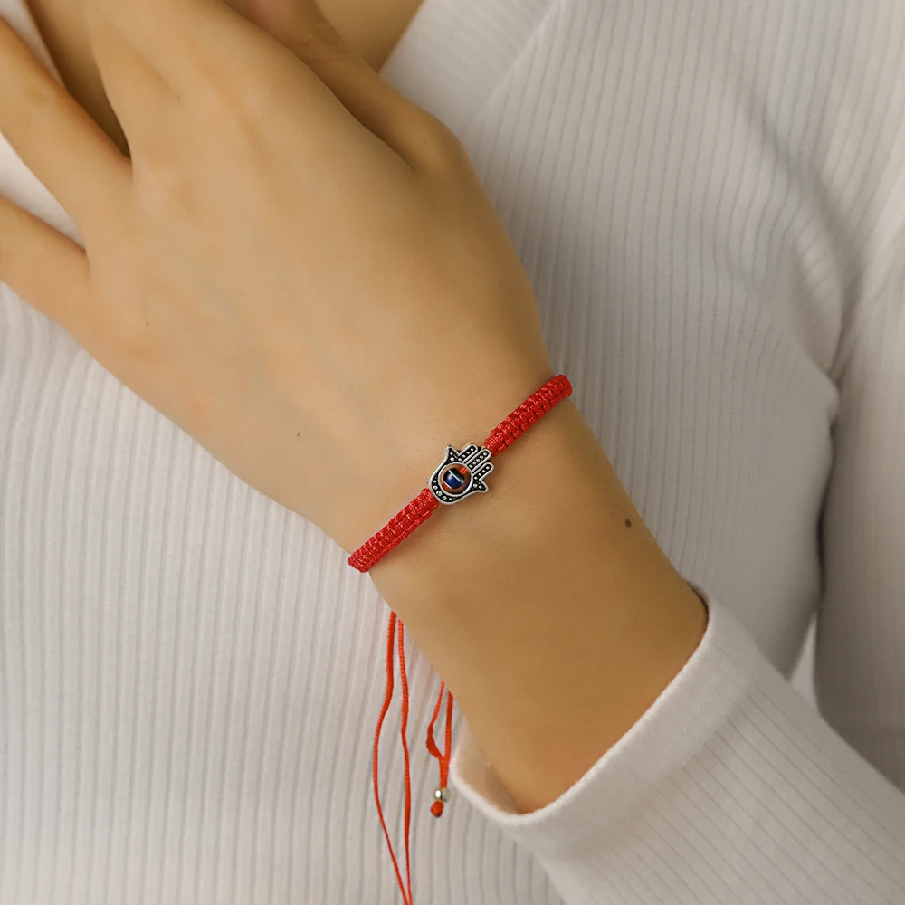 New Prayer Hand of Fatima Evil Eye Braiding Bracelet Red Black Blue Color Nylon Thread Lucky Couple Bracelet Jewelry Men Women