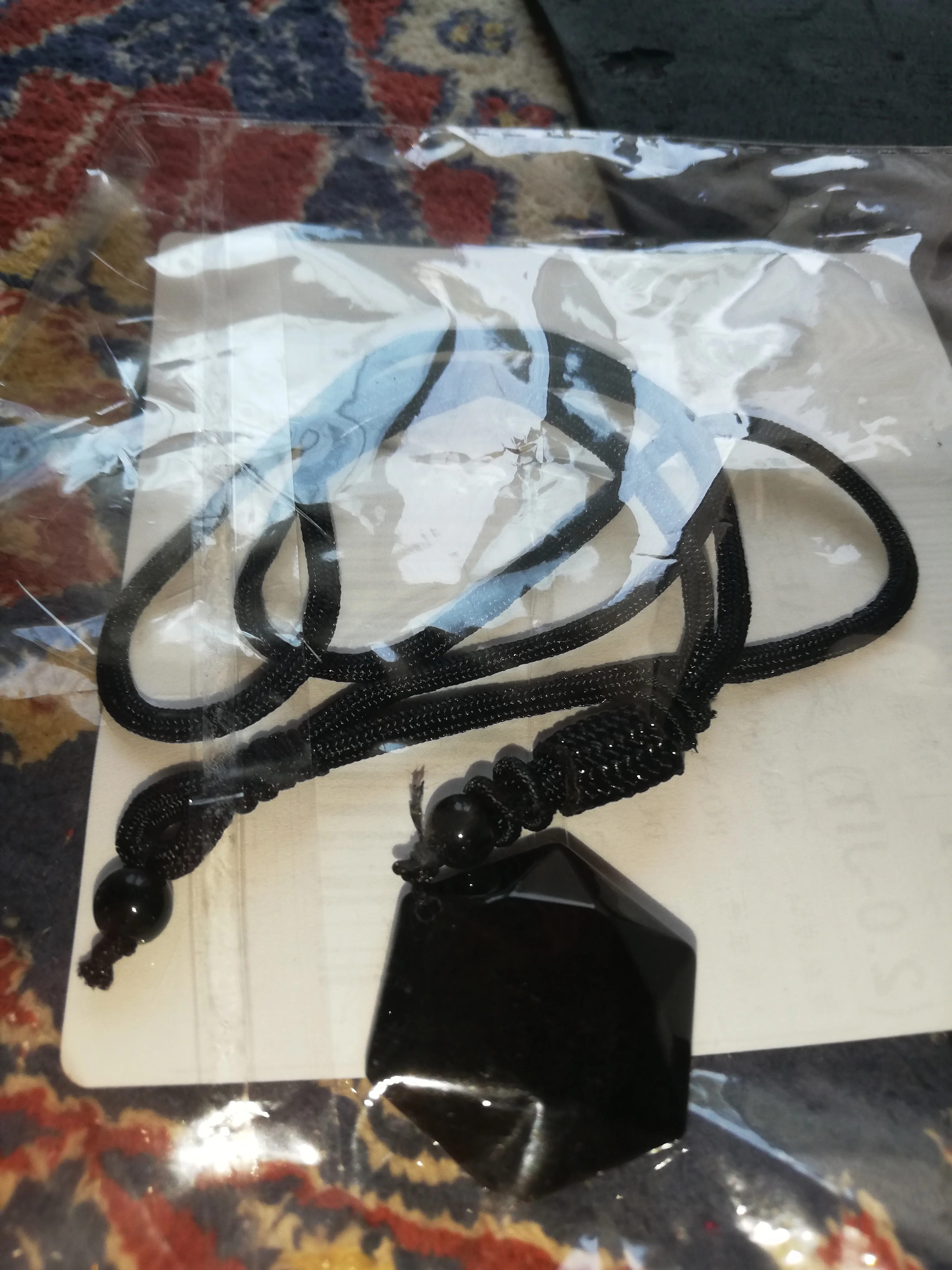 Nice necklace. The cabachon is big enough to see but not big enough to seem gaudy. Just hope it’s made from a material that doesn’t easily scratch.