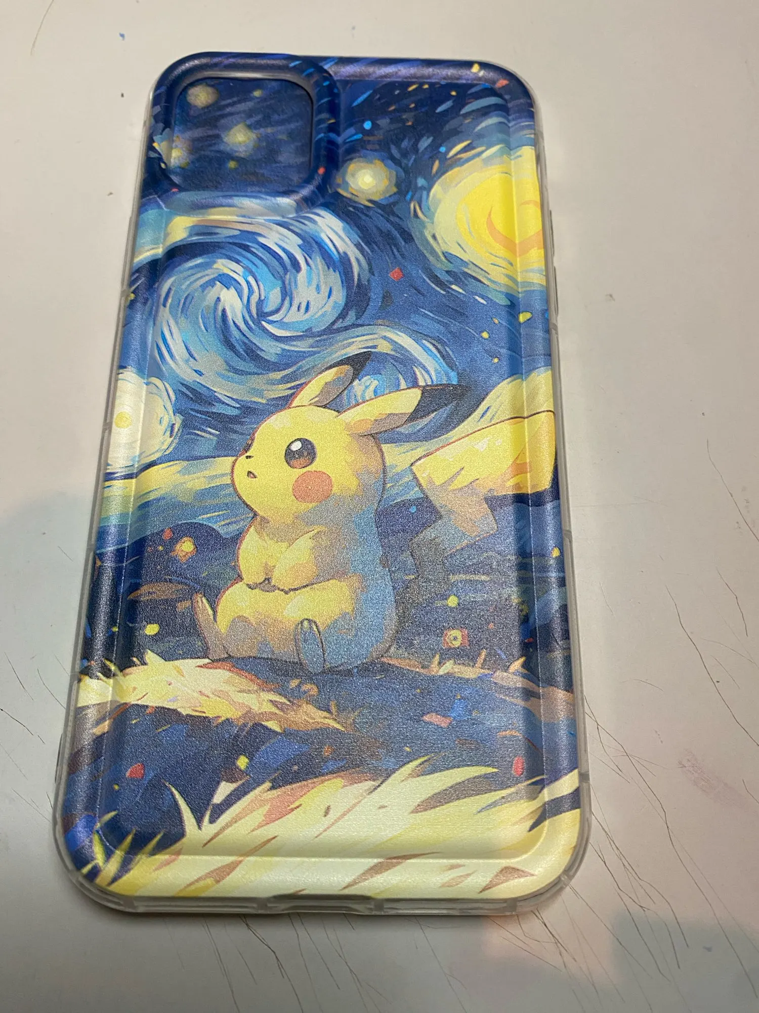 Oil Painting Pokemon Case for iPhone 15 14 13 12 11 Pro Max XR XS X 8 7 6 6S Plus SE 2020 Shockproof Clear TPU Protective Cover
