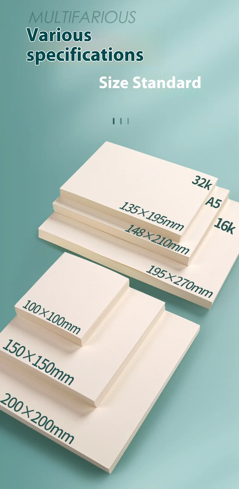 Specifications :6*6cm/10*10cm/10*15cm/15*15cm/20*20cm/30*30cm/32K/16K/A5/A4