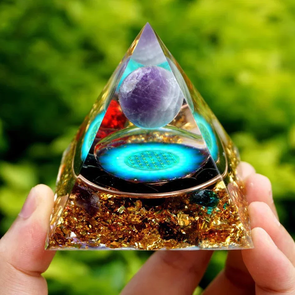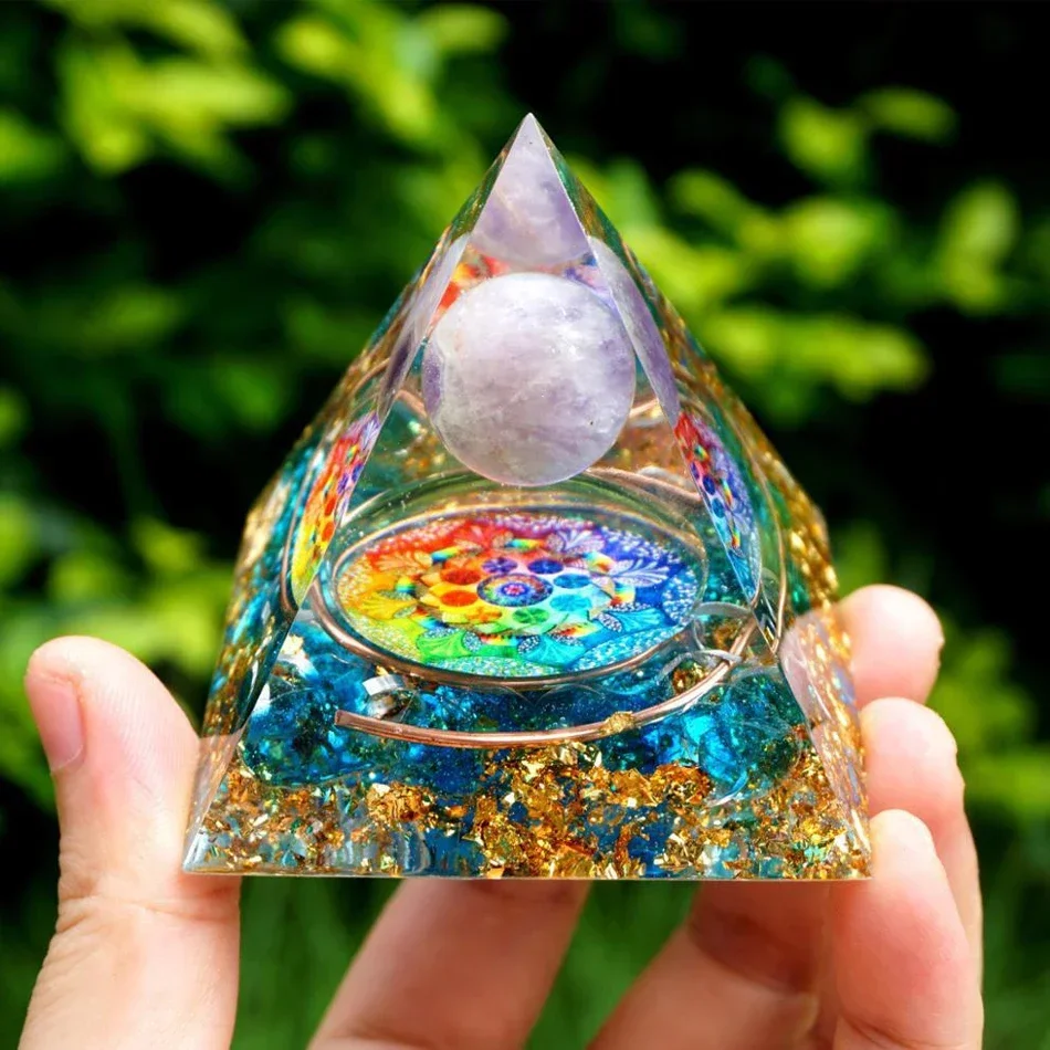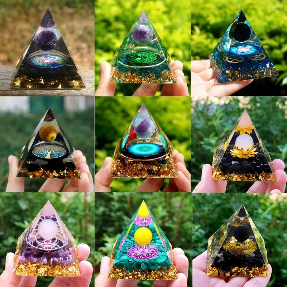 Orgonite Pyramid Healing Crystals Energy Generator Amethyst natural stone pendulum Reiki Chakra Meditation Tool room Decorations