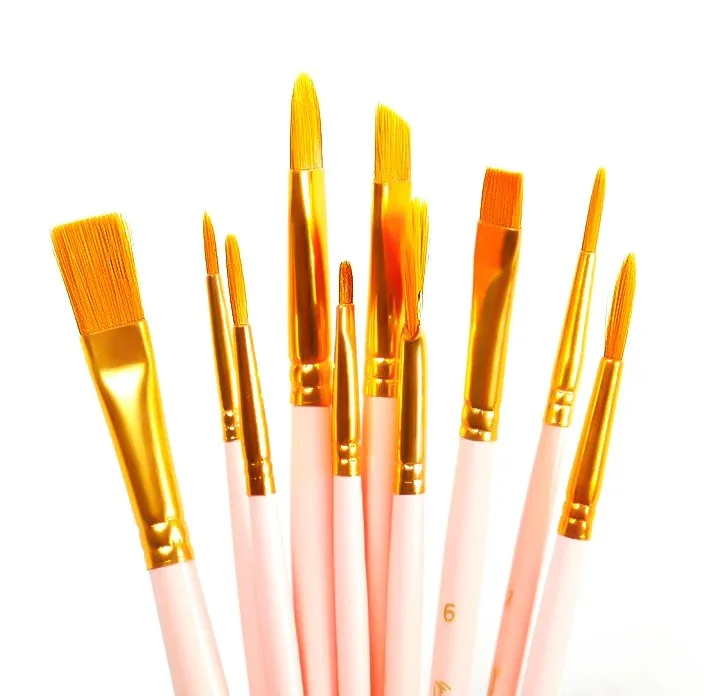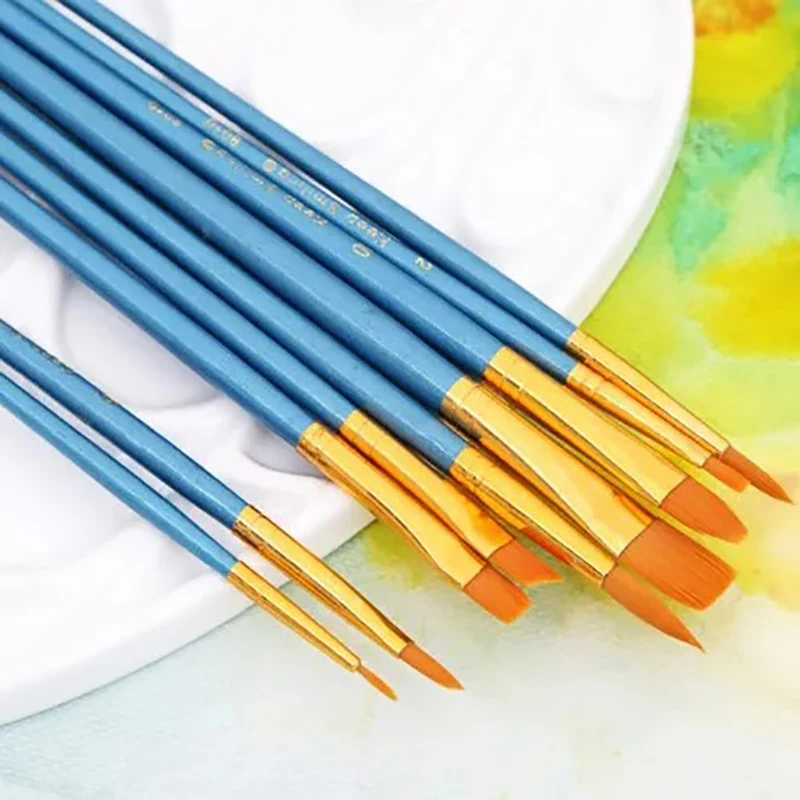 Ginflash 6/10pcs set Watercolor Gouache Painting Pen Nylon Hair Paint Brush Set Drawing Art Supplies