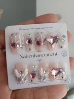 12 reviews for Sakura Nail Art Sweet Dreamy Fantasy Handmade Wearable Nails Angel Wings Nail Patches Pink Love Diamonds Fake Nails
