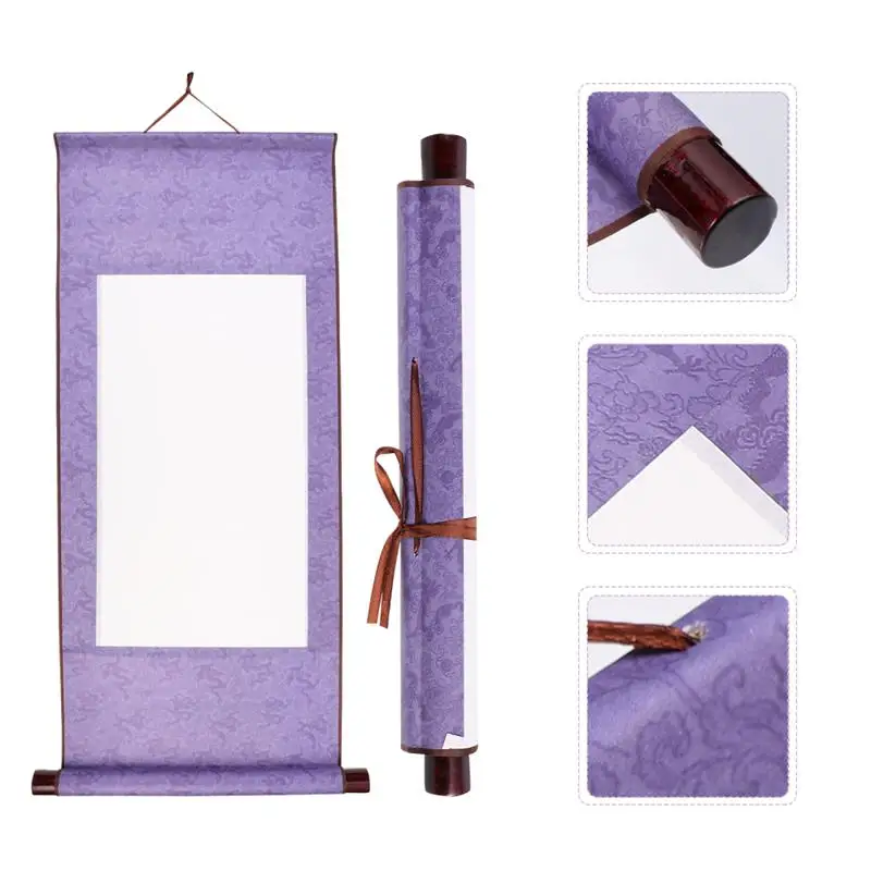 – You may paint or write directly on the plain rice paper area in the center; Or paint on other paper first, then paste to scroll, if you worry about painting not good.