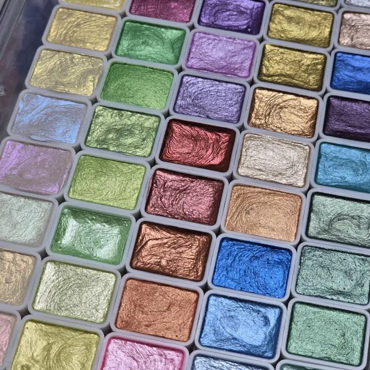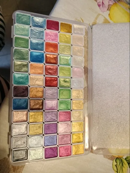I bought this pearly watercolor again because I really liked it. Excellent pigmentation. Beautiful shades of colors. I recommend it. Arrived in perfect condition and well protected with the packaging.