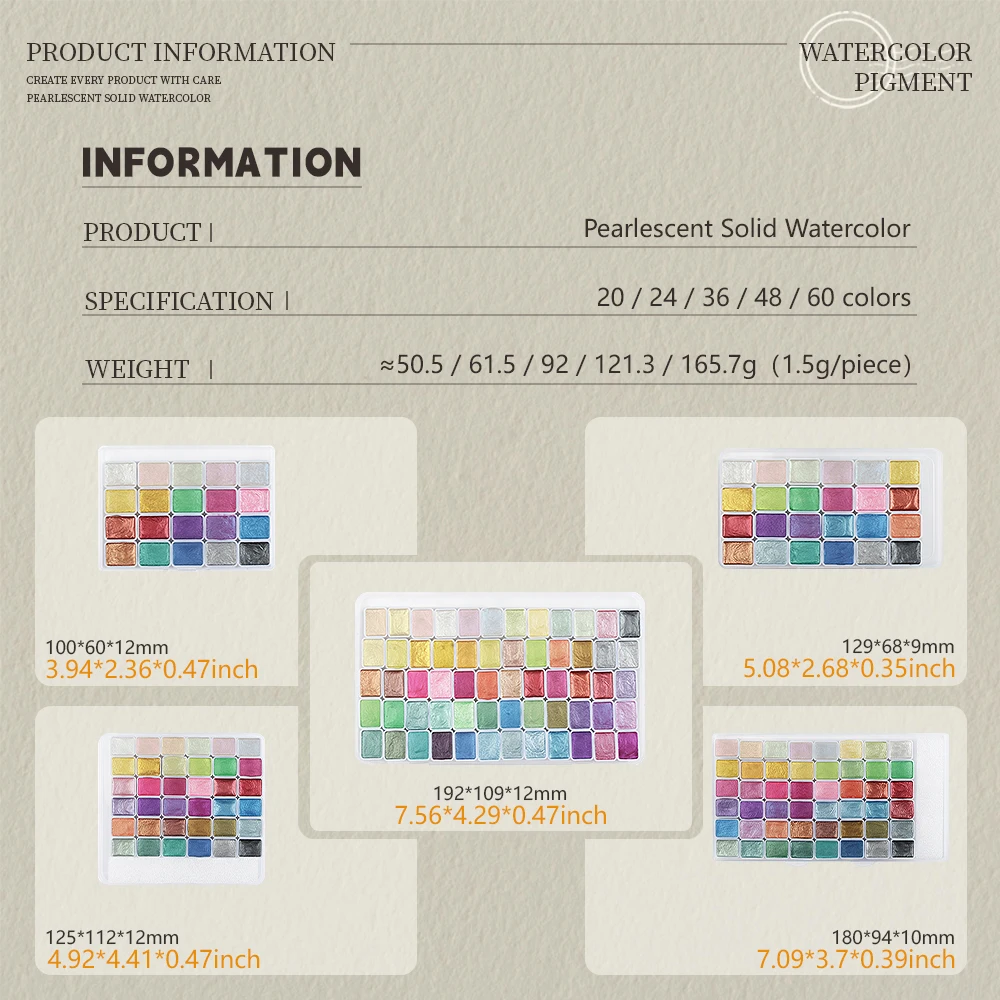 SeamiArt 20 24 36 48 60 Colors Pearlescent Solid Watercolor Set