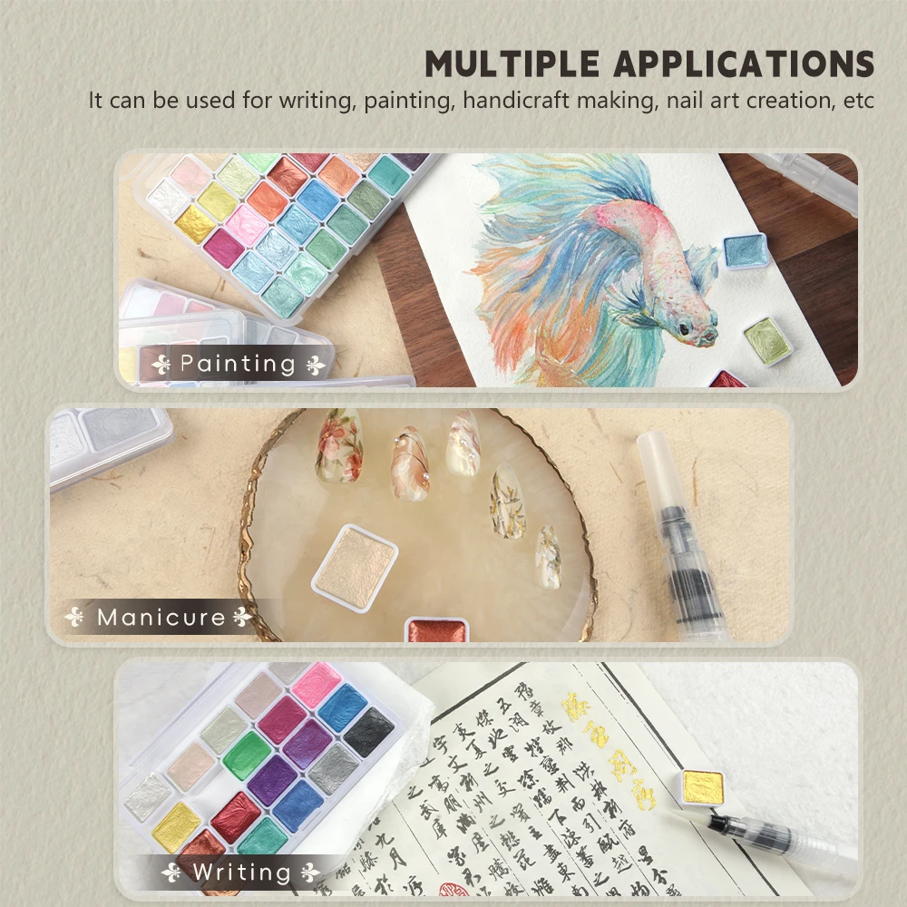 SeamiArt 20 24 36 48 60 Colors Pearlescent Solid Watercolor Set For Drawing Painting Writing Nail Art Creation Art Supplies