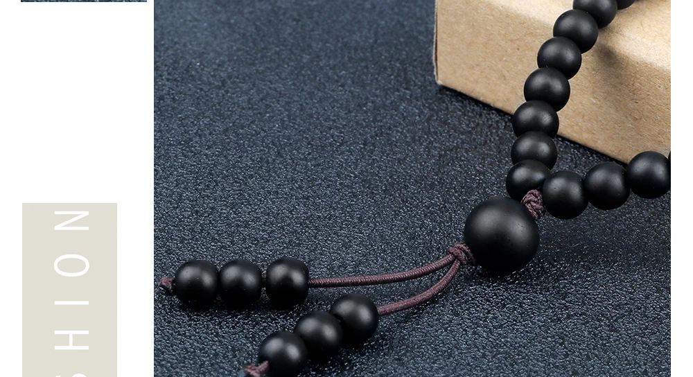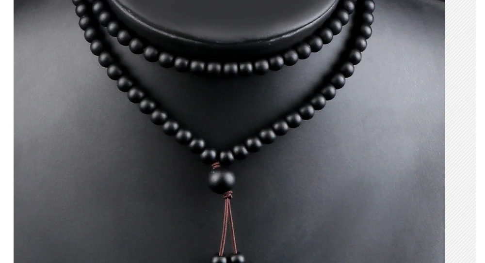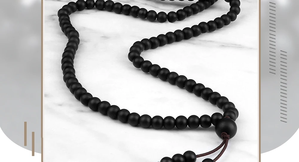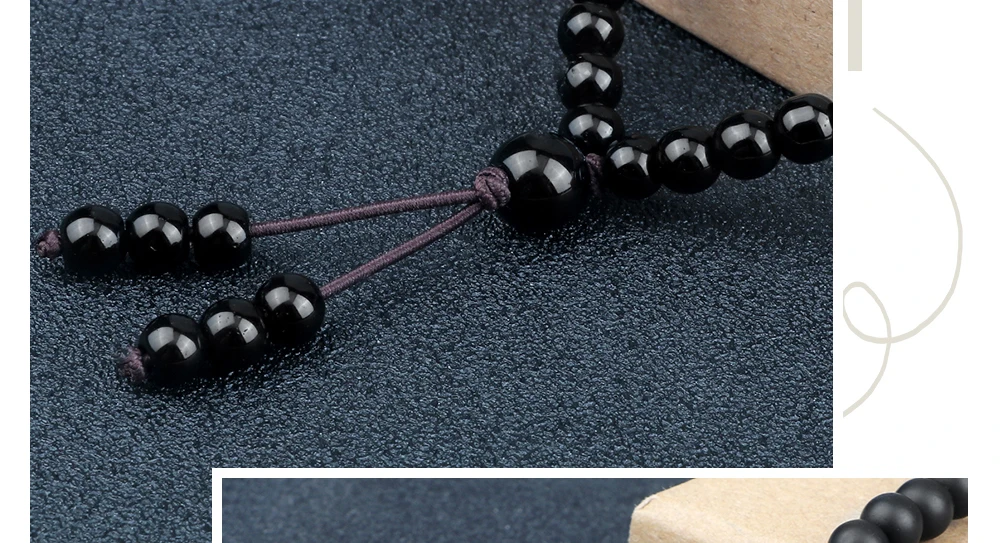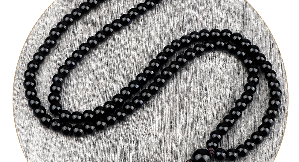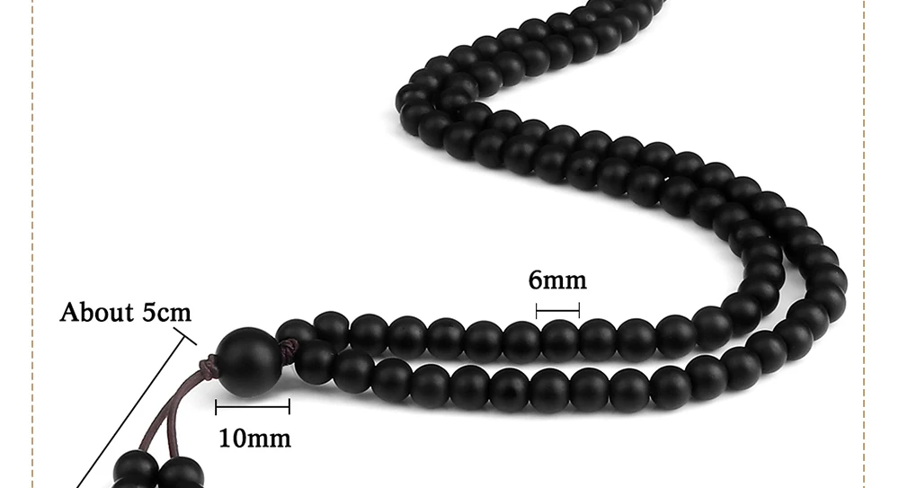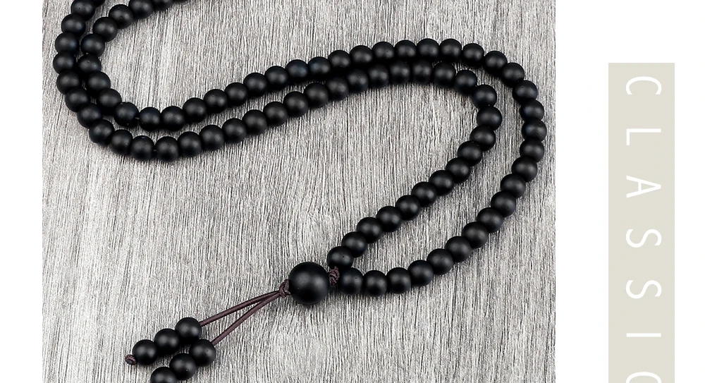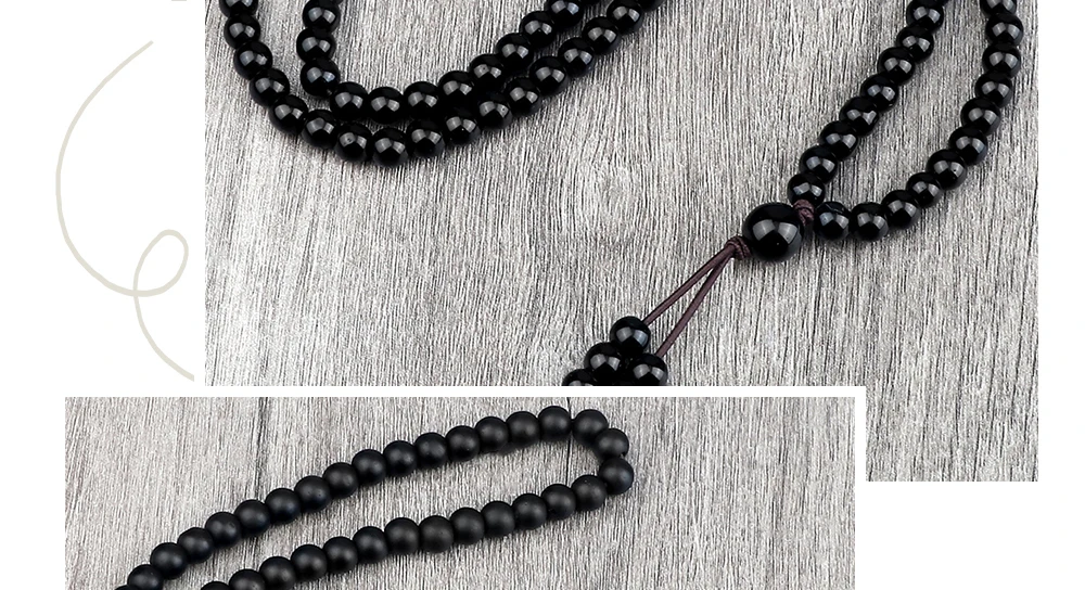 Shiny Black Natural Stone Beaded Necklace Obsidian Matte Onyx 108 Mala Beads Wrap Bracelet Meditation Yoga Jewelry for Women Men
