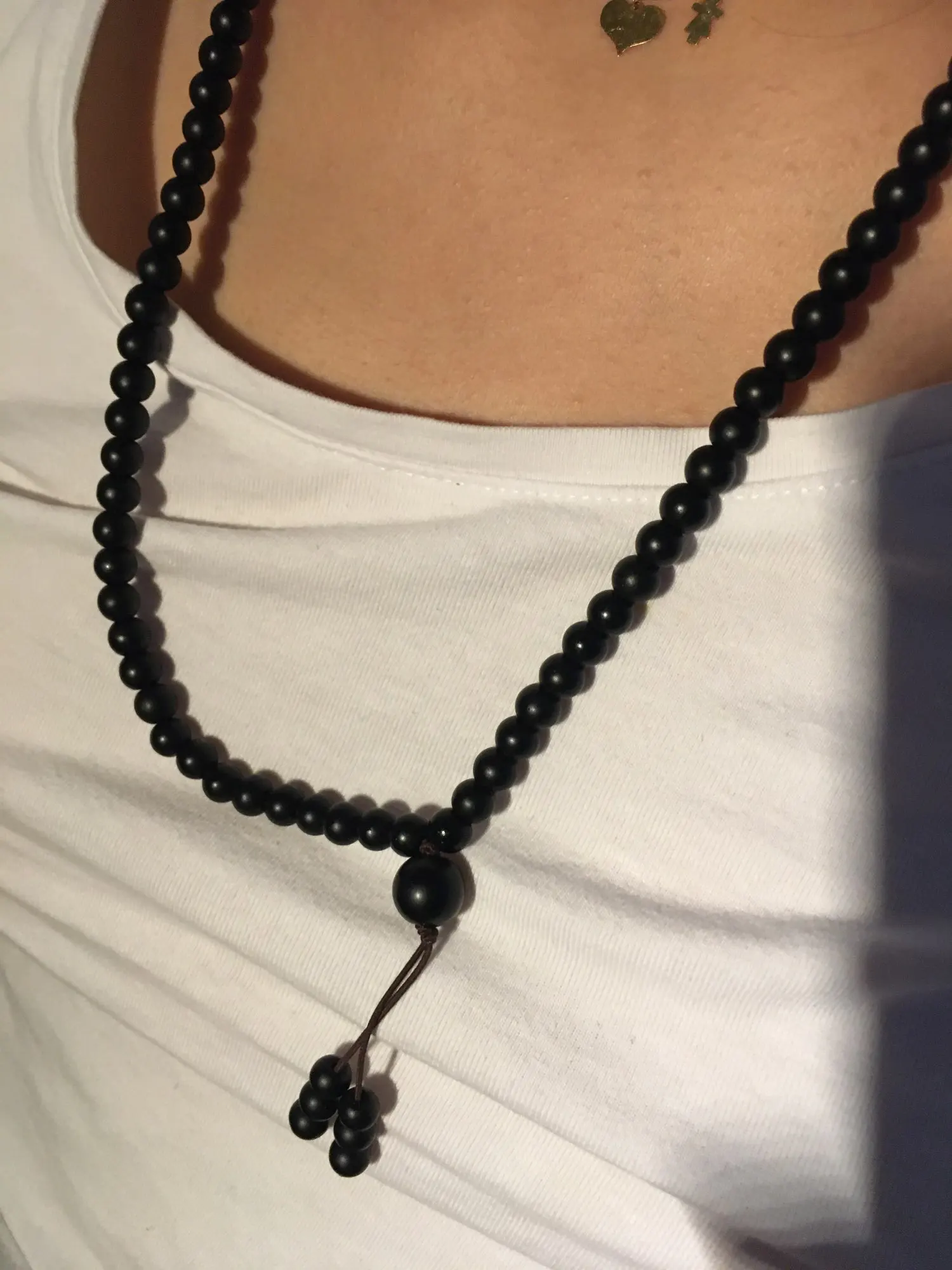 Shiny Black Natural Stone Beaded Necklace Obsidian Matte Onyx 108 Mala Beads Wrap Bracelet Meditation Yoga Jewelry for Women Men