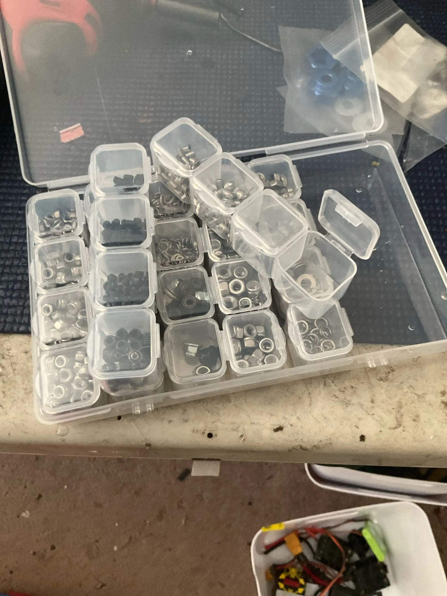 This is a great little container that holds a truly amazing amount of stuff. I decided to separate nuts, washers, and set screws from the boxes I store bolts and screws in, and there are at least 1000 pieces of M3 and M4 HW in this little guy. Thank you seller,