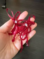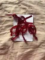 They are very beautiful earrings, the quality is regular, they look good but if you look at them in more detail you can see the knots of the elastic with which the red beads are attached. If I liked it, I recommend it. They don’t weigh much.