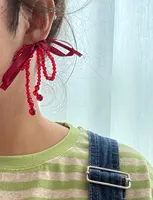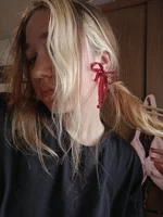 15 reviews for Statement Lucky Red Earrings Personality Big Ribbon Crystal Knot Tassel Long Drop Earings Jewelry For Women Korean Style