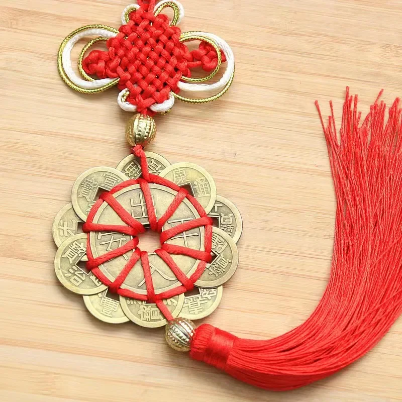 Featuring 10 different ancient coins, each of the ten coins has an auspicious red lucky knot, which means good luck forever, also known as the mysterious knot