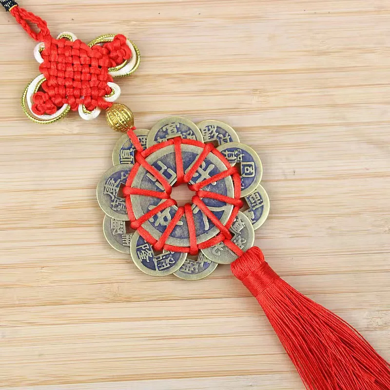 The 10 coins are linked to the auspicious red lucky knot, which symbolizes never-ending good fortune and is also known as the mystery knot.