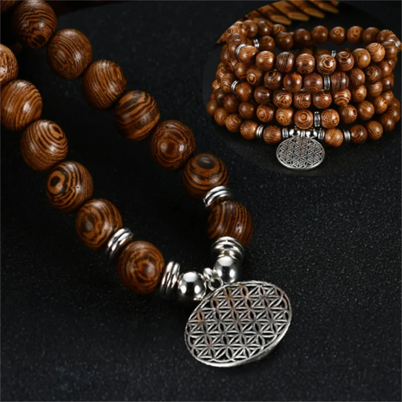 Top 108 Mala Buddhist Prayer Beads Natural eaglewood Beads Bracelets Yoga Jewelry Wood Rosary Bracelet Life Tree Hanging Tag