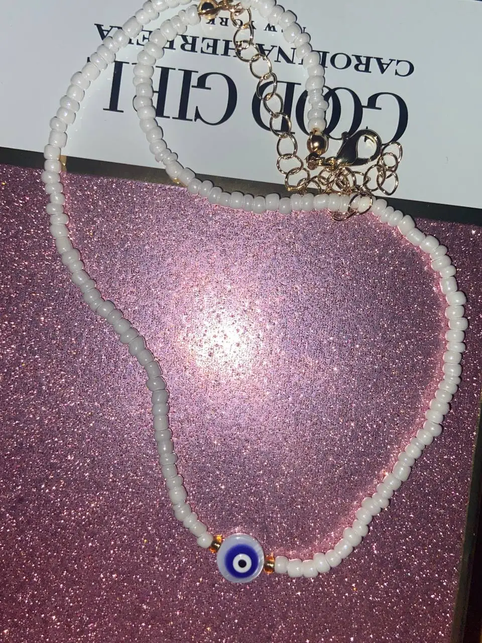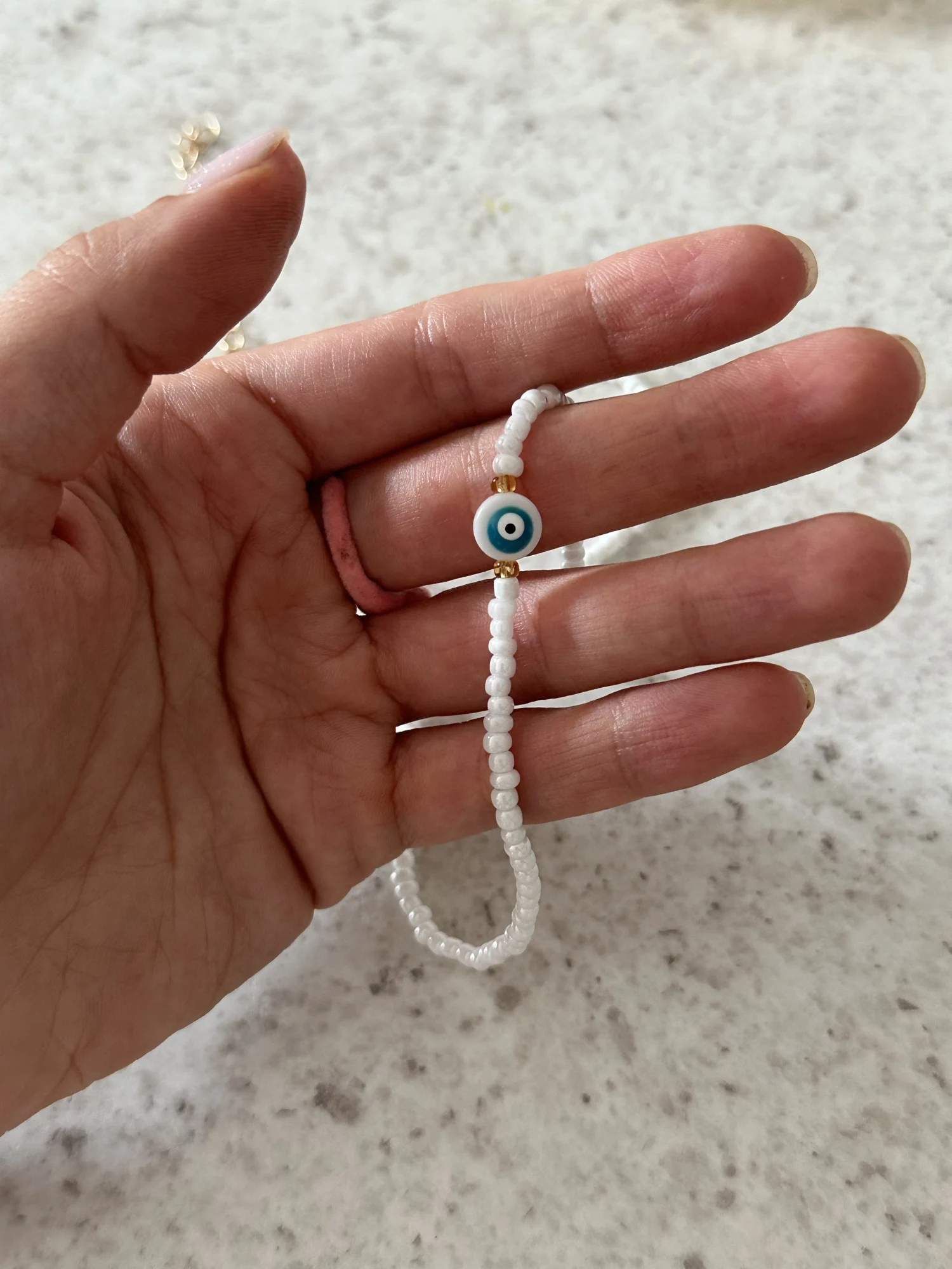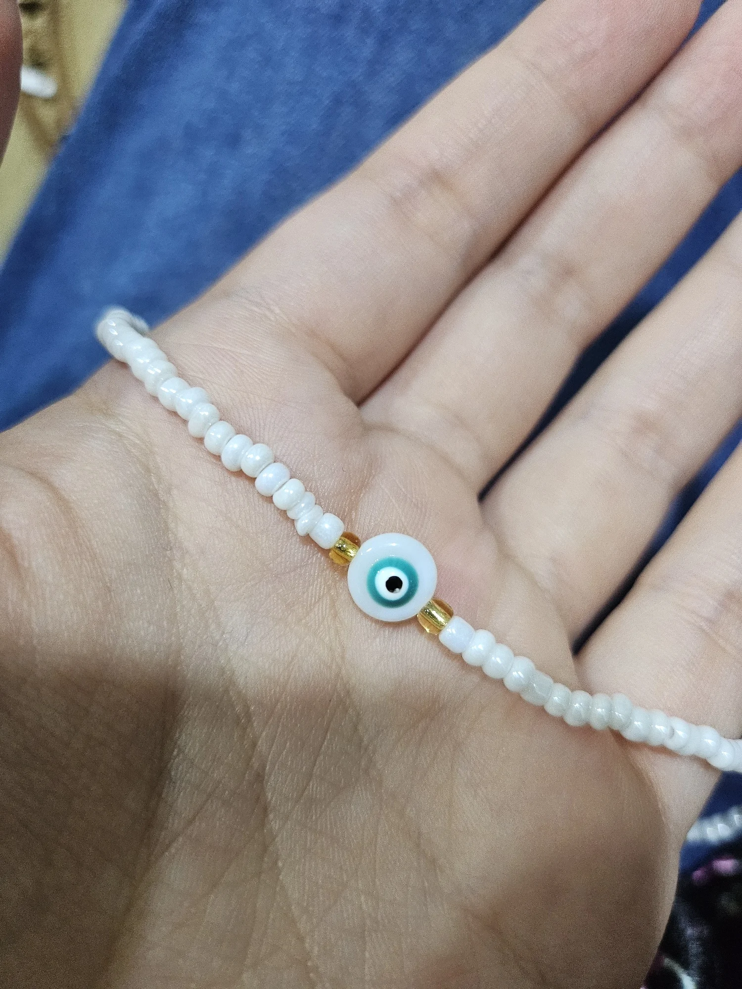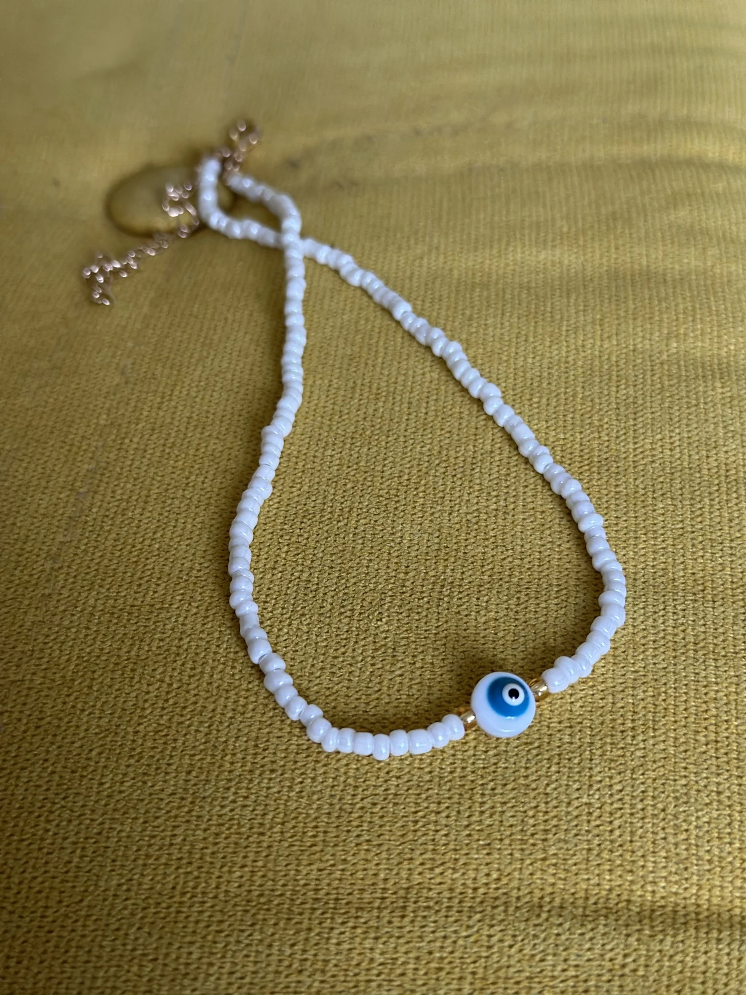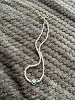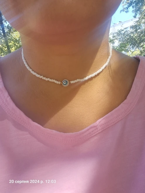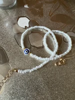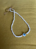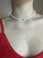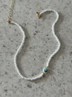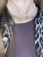 Turkey Lucky Eye Seed Beads Choker Necklace for Girl White Color Seed Beads Bohemian Short Necklace