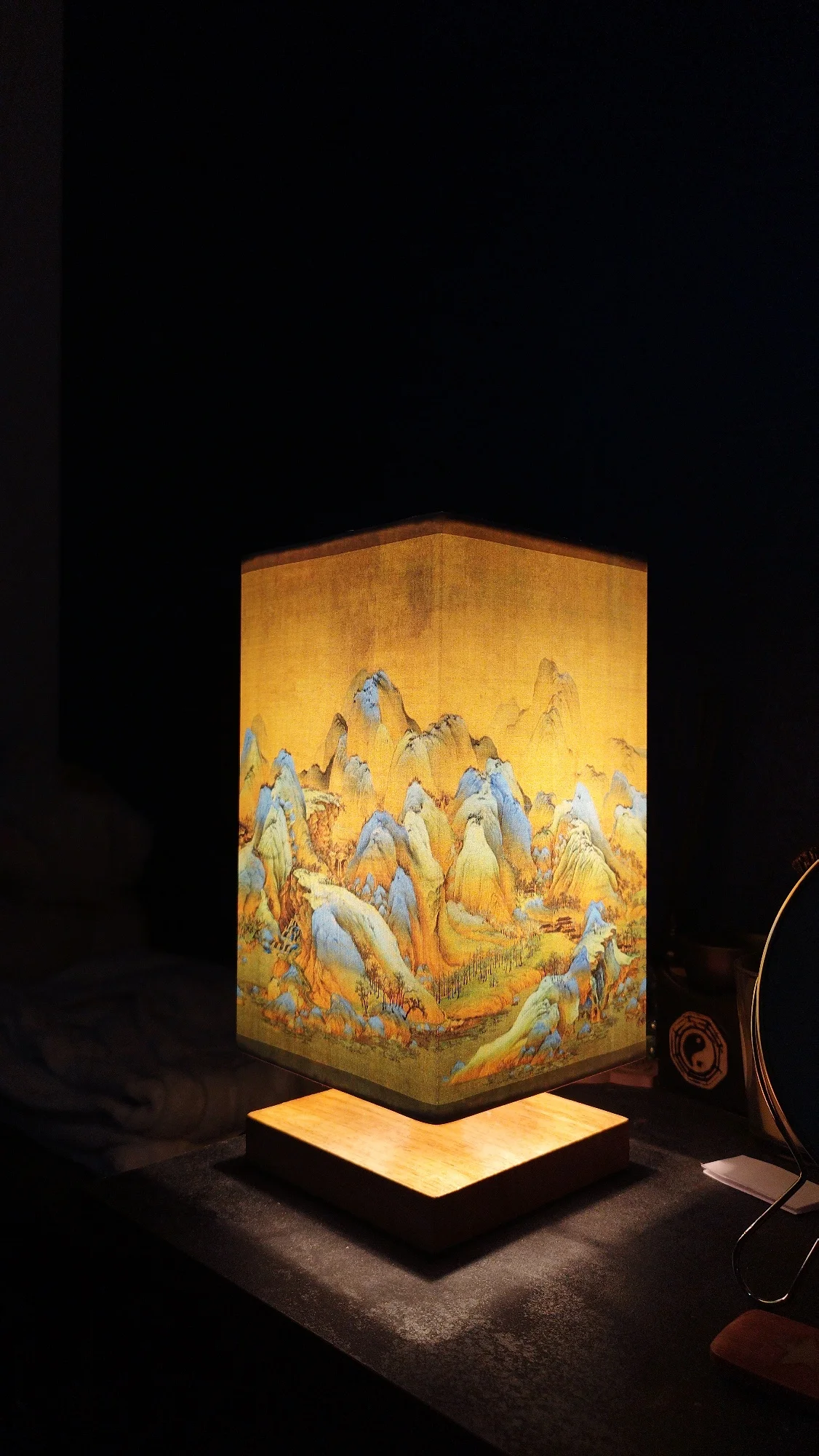 Vintage Chinese Style Wooden Table Lamp Retro Landscape Painting Desk Lamp Lights for Room Decoration Personality Beside Lamp