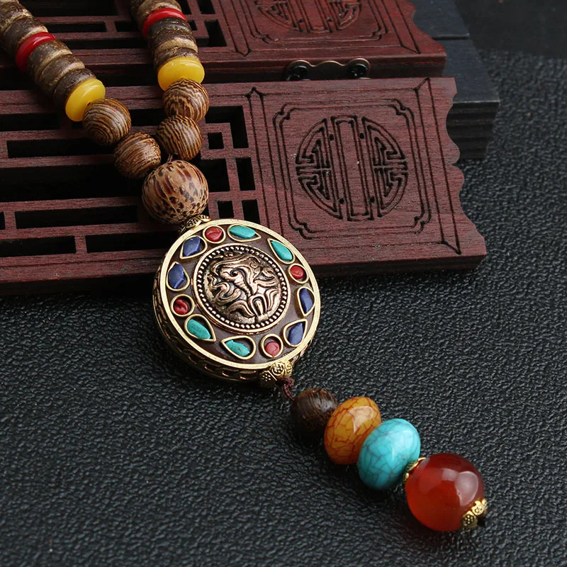 New 2020 Ethnic Nepal Long Buddhist Mala Wood Beaded Pendant & Necklace